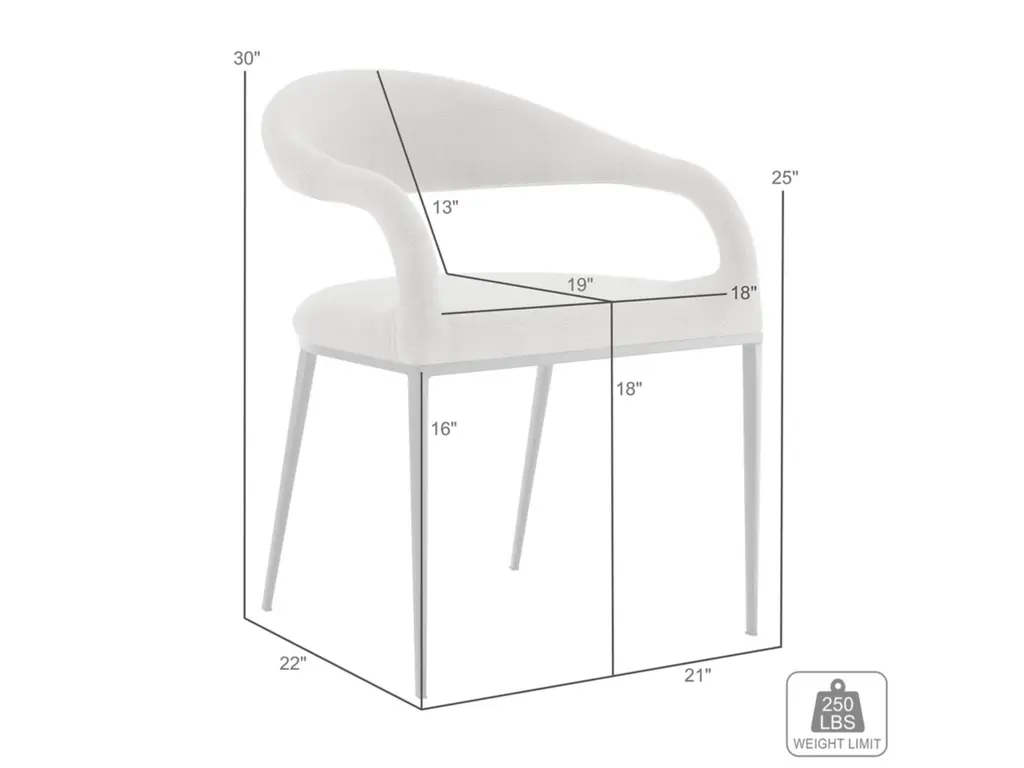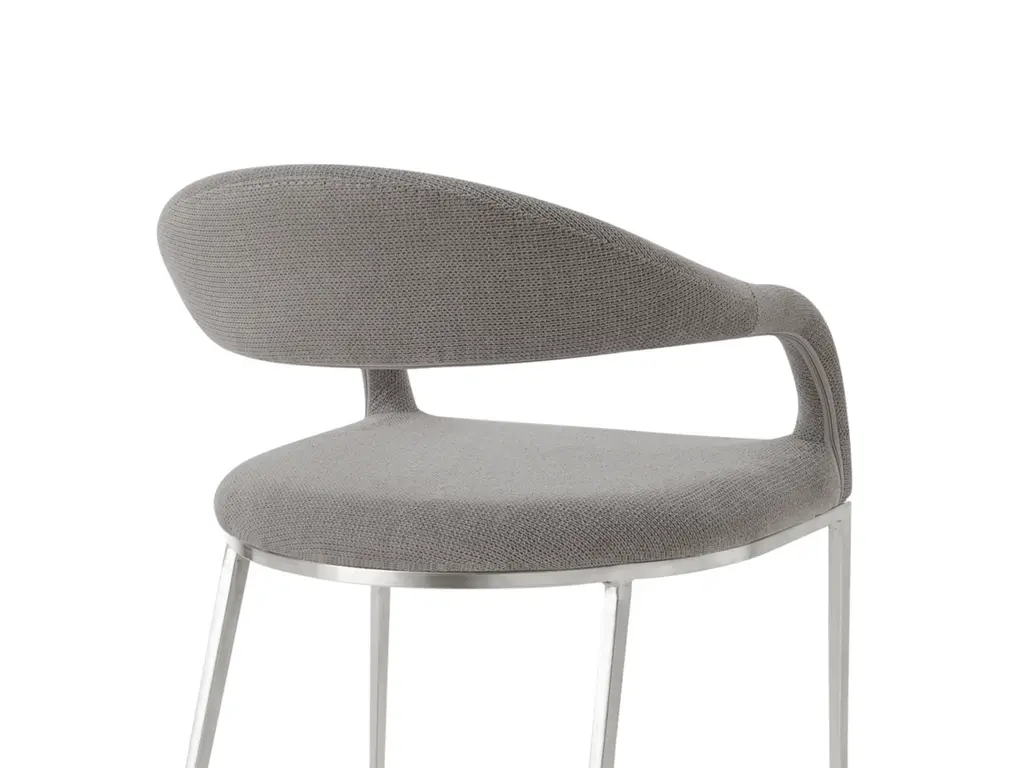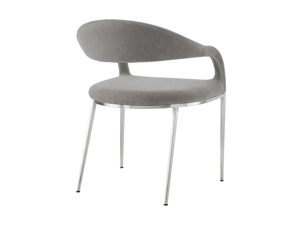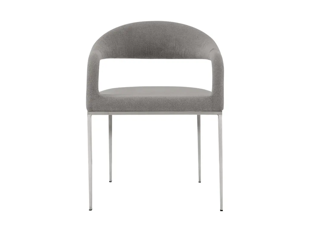 Transform any space with the luxurious charm and comfort of the Morgan Dining Chair in Fabric and Metal - Set of 2 by Armen Living. The cozy yet streamlined profile of our chair offers comfort with a touch of opulence. Its beautifully curved back and seamlessly flowing arms lend refinement to this dining chair and any room you put it in. The back, arms, and seat cushion are fully upholstered to offer hours of comfort. The Morgan chair is covered in performance fabric, which provides easy care and maintenance. Perched on four slender legs, this dining chair serves as a stylish complement to any contemporary or modern room. From casual to formal meals, elevate your eat-in kitchens and dining rooms to the simple elegance of the Morgan Dining Chair. Beyond dining, it can offer a chic and comfortable accent chair anywhere from your living space to your home office. Available as a set of two, the Morgan Upholstered Dining Chair comes in matte black iron with Light Gray, Charcoal, or Blue Fabric, or brushed stainless steel with Light Gray, Charcoal, or Blue Fabric to bring comfort and grace to your home.