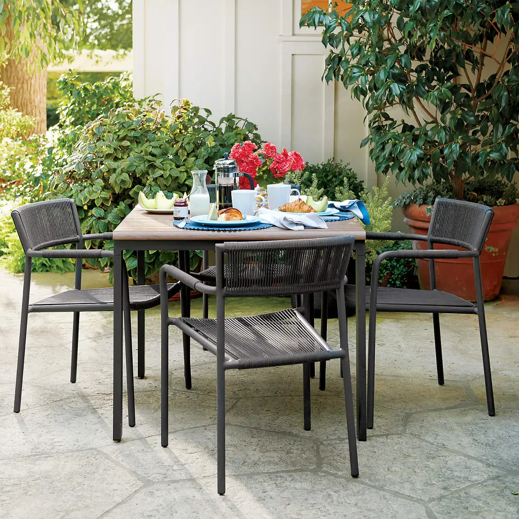 When it comes to relaxing outdoors in affordable modern style, our laid-back Morocco dining chair knows the ropes. Handwoven synthetic resin rope, a resilient new design material that's colorfast and UV-resistant, defines the linear look and comfort.