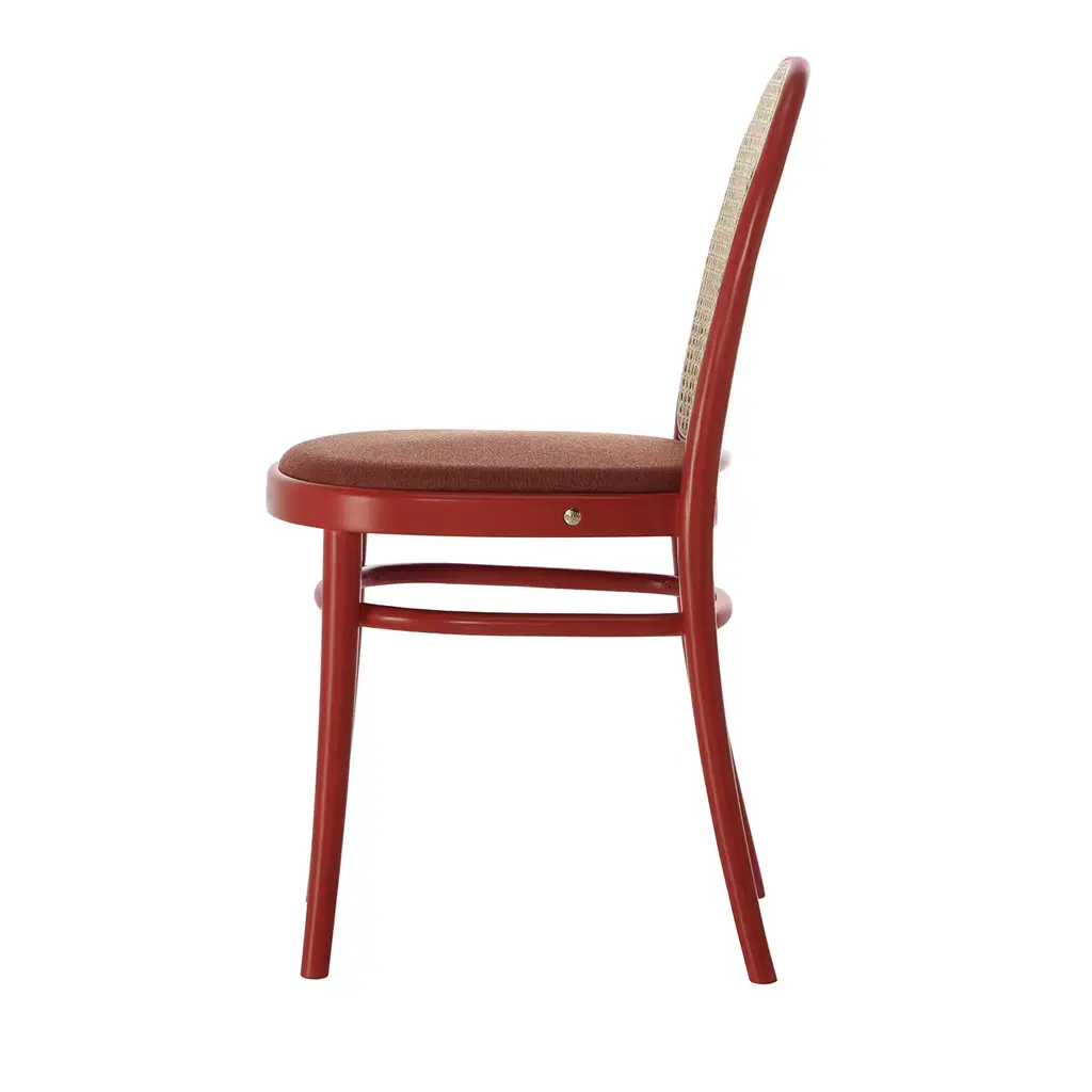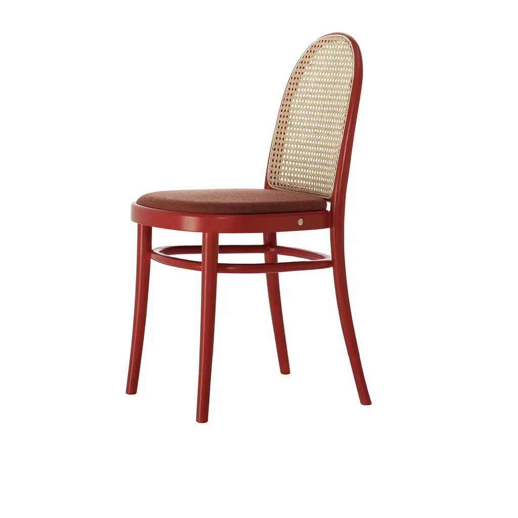 A stunning addition to both a classic and contemporary dining room, this chair will imbue any home with elegance and sophistication, while also adding a pop of vivid color, thanks to its red lacquered finish. This piece was designed by GamFratesi in 2015 and features Thonet's signature Viennese straw covering the backrest and the beechwood structure, whose structural elements are bent with the use of steam. The cushioned seat, upholstered in the same red hue, adds comfort to this refined piece that can be combined with the Morris Tall Chair.