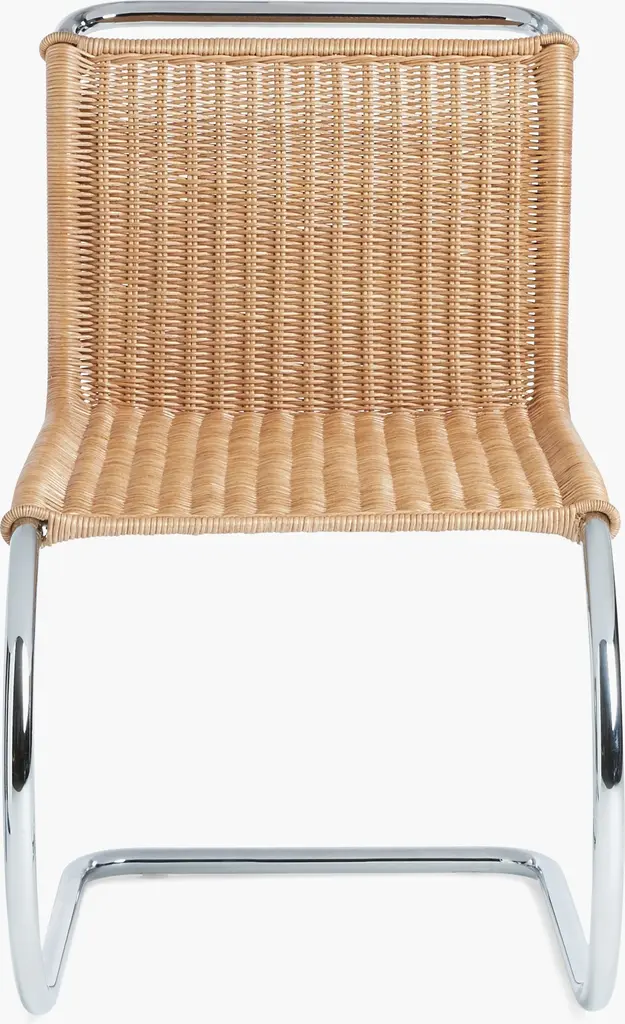 Ludwig Mies van der Rohe's MR Side Chair was designed in 1927 as part of his contribution to the Weissenhof exhibit in Stuttgart, Germany. The chair's cantilevered design uses tubular steel - a technological novelty at the time - to create an intuitively accessible and ergonomic seat. (When asked why he created chairs with generously sized seats, Mies van der Rohe allegedly replied that he designs chairs he'd be most comfortable sitting in.) Still made to Mies' original specifications, the MR Side Chair is perfectly balanced, featuring the material innovation and lack of ornamentation that epitomize the International Style. It was awarded the Museum of Modern Art Award in 1977 and the Design Center Stuttgart Award in 1978. The frame of this piece is stamped with the KnollStudio logo and Mies van der Rohe's signature. This is the authentic MR Side Chair produced by Knoll.