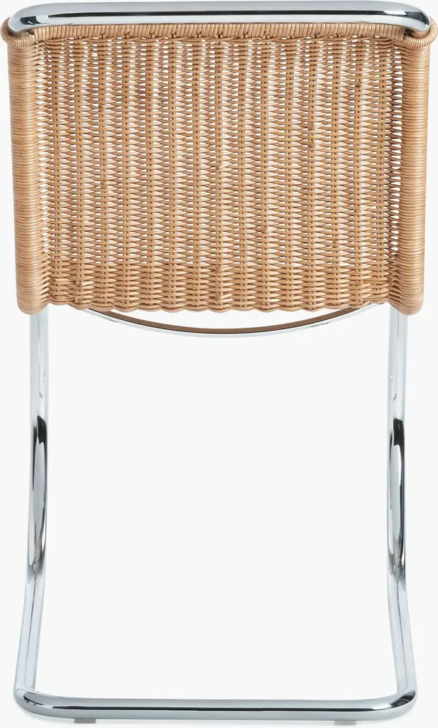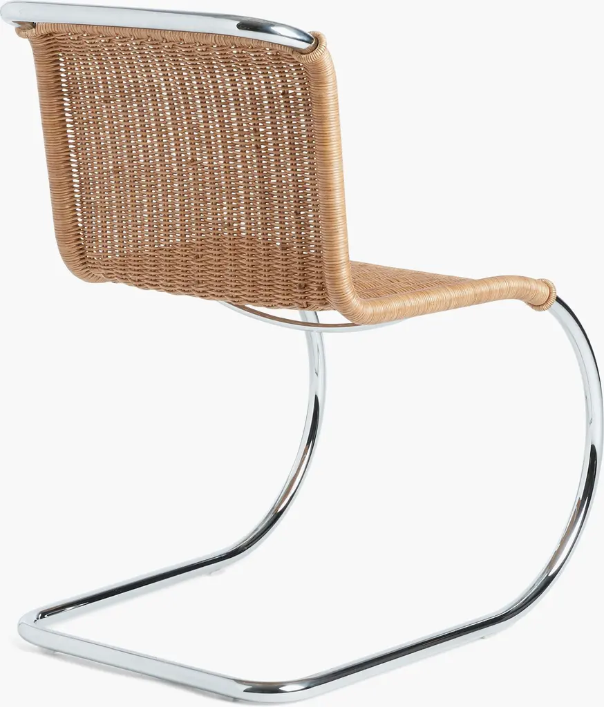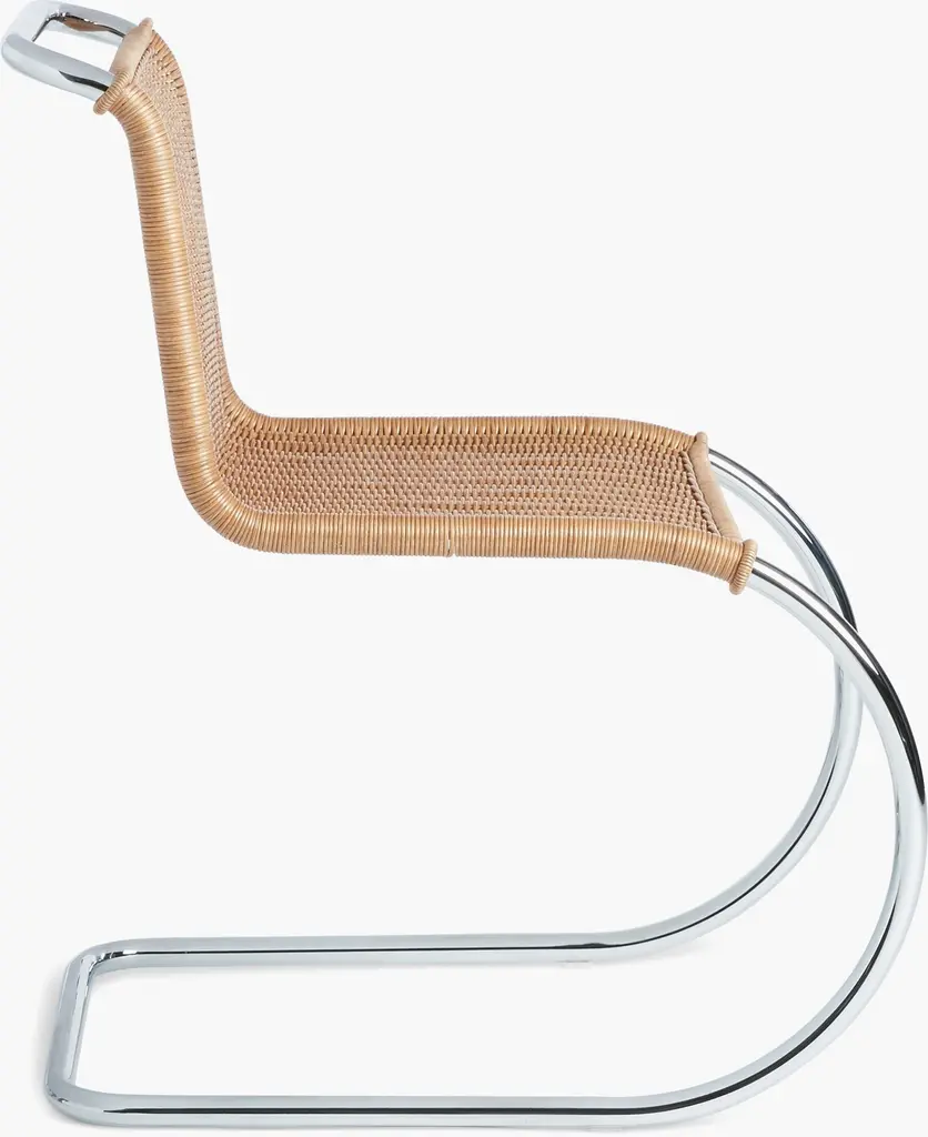 Ludwig Mies van der Rohe's MR Side Chair was designed in 1927 as part of his contribution to the Weissenhof exhibit in Stuttgart, Germany. The chair's cantilevered design uses tubular steel - a technological novelty at the time - to create an intuitively accessible and ergonomic seat. (When asked why he created chairs with generously sized seats, Mies van der Rohe allegedly replied that he designs chairs he'd be most comfortable sitting in.) Still made to Mies' original specifications, the MR Side Chair is perfectly balanced, featuring the material innovation and lack of ornamentation that epitomize the International Style. It was awarded the Museum of Modern Art Award in 1977 and the Design Center Stuttgart Award in 1978. The frame of this piece is stamped with the KnollStudio logo and Mies van der Rohe's signature. This is the authentic MR Side Chair produced by Knoll.