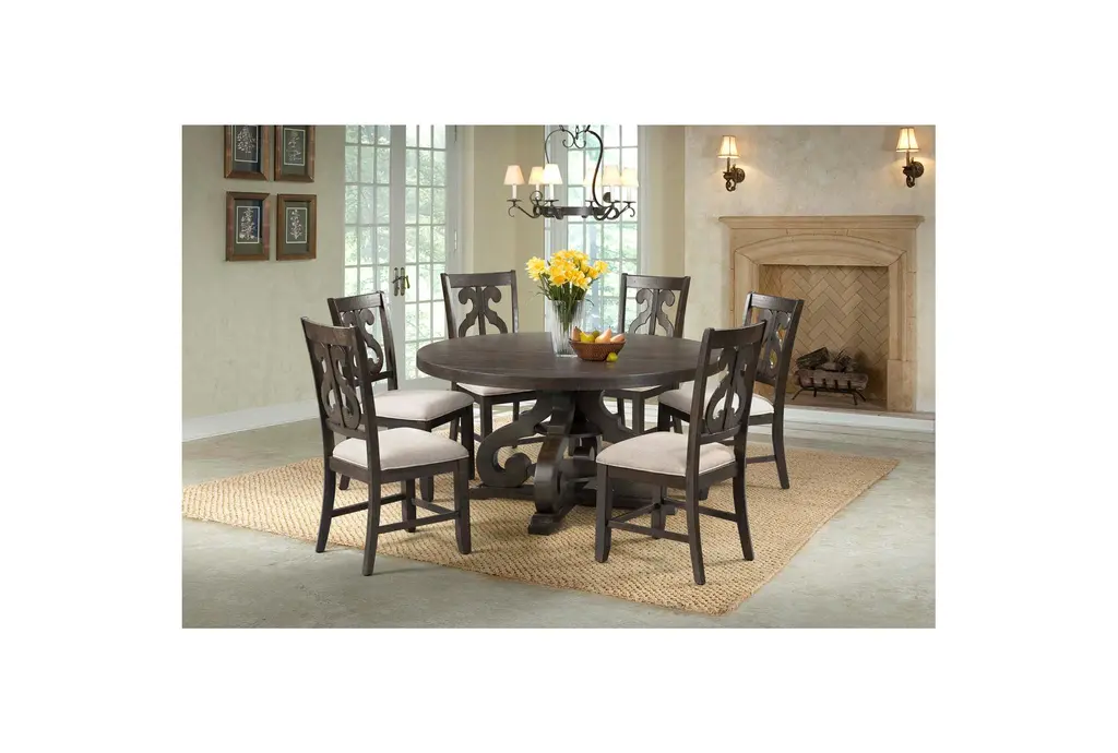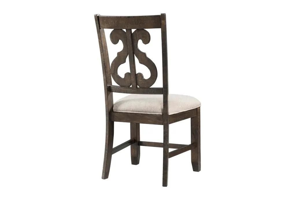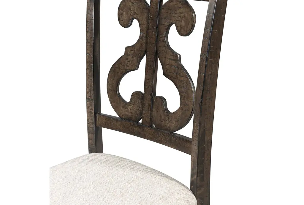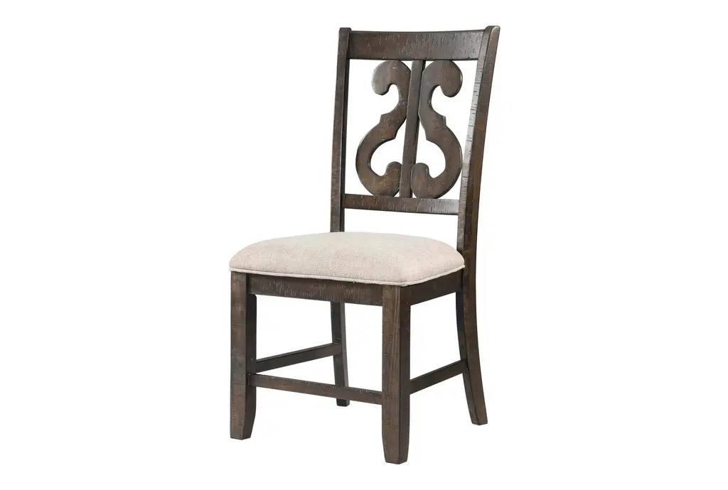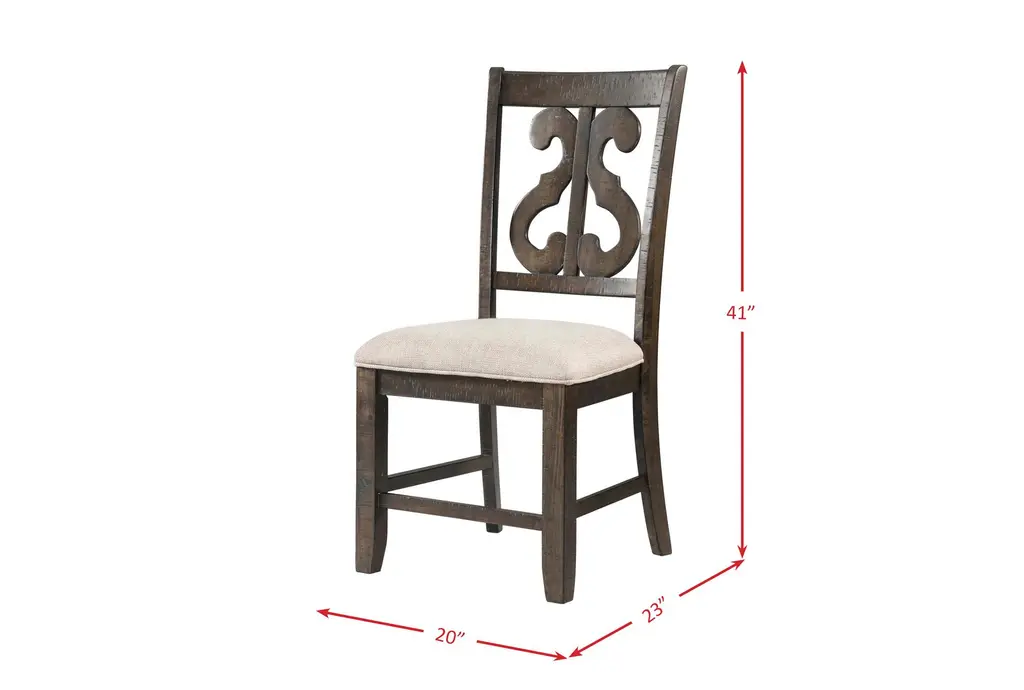 Enhance your dining experience with the Mumford Walnut Wood Swirl Back Dining Side Chair Set of 2. These armless chairs feature a beautiful smokey walnut finish that adds a touch of farmhouse charm to your dining room or kitchen. The foam cushion seat provides comfort, making these chairs perfect for long meals and gatherings.