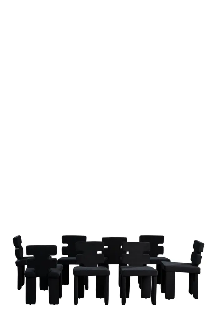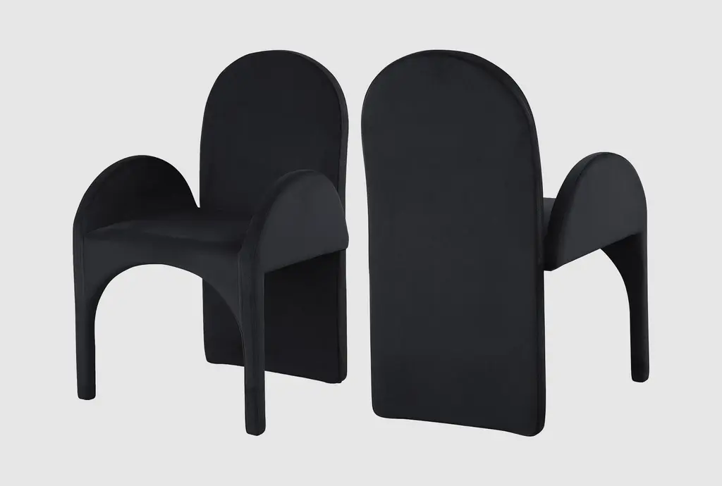 The Mya Dining Chair in black is the perfect addition to elevate your dining experience. Crafted with luxurious velvet fabric and a unique design, this fully upholstered chair is perfect as a side chair or dining chair. Impress your guests and add a touch of sophistication to your dining room. Now that's a statement piece.