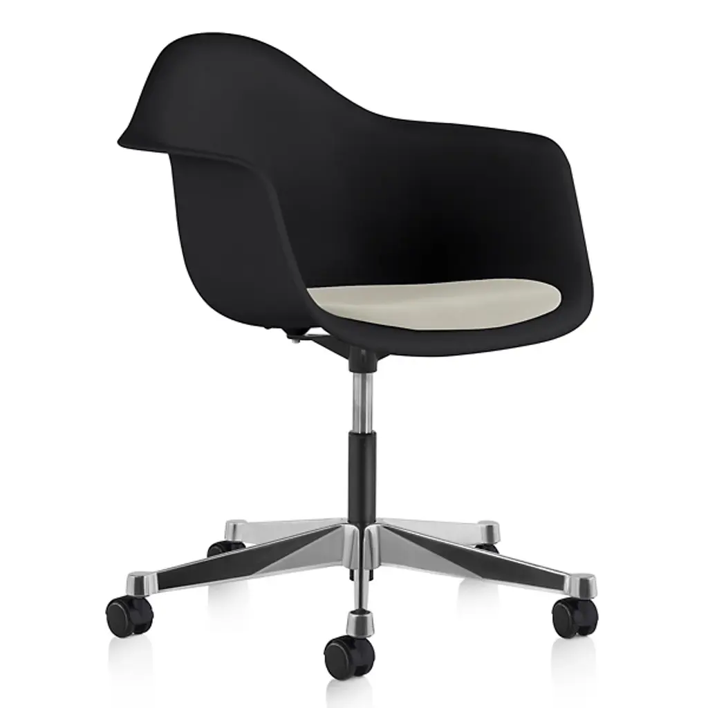 Vitra's Mynt chair is a highly adaptable all-rounder designed by Erwan Bouroullec in 2025. Combining a warm, homely esthetic with advanced technology and a sleek, dynamic form, Mynt is a versatile choice for a variety of settings. The curved backrest flows seamlessly into supportive armrests and a softly contoured seat – in this version, both the seat and backrest are made from recycled polyamide. The sturdy star-shaped base is crafted from aluminum. The most inventive feature of the Mynt chair is its patented tilting mechanism, which automatically adapts to the user's movements and weight. The seat tilts forward or backward in response to your body's center of gravity, moving independently of the backrest. All that's left for you to do is adjust the seat height to your preference. Exceptionally versatile, Mynt works just as well as a task chair in the office as it does around the dining table at home or in a restaurant.
