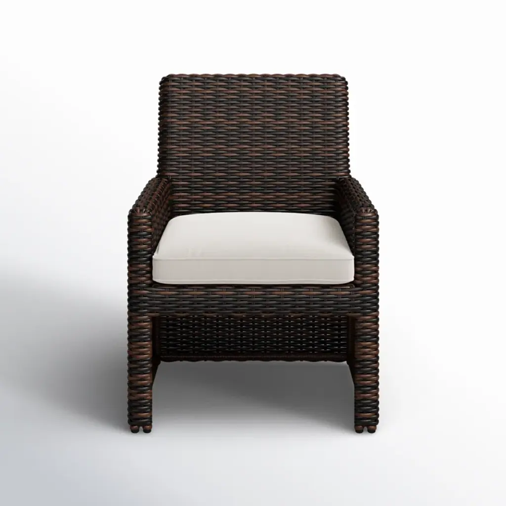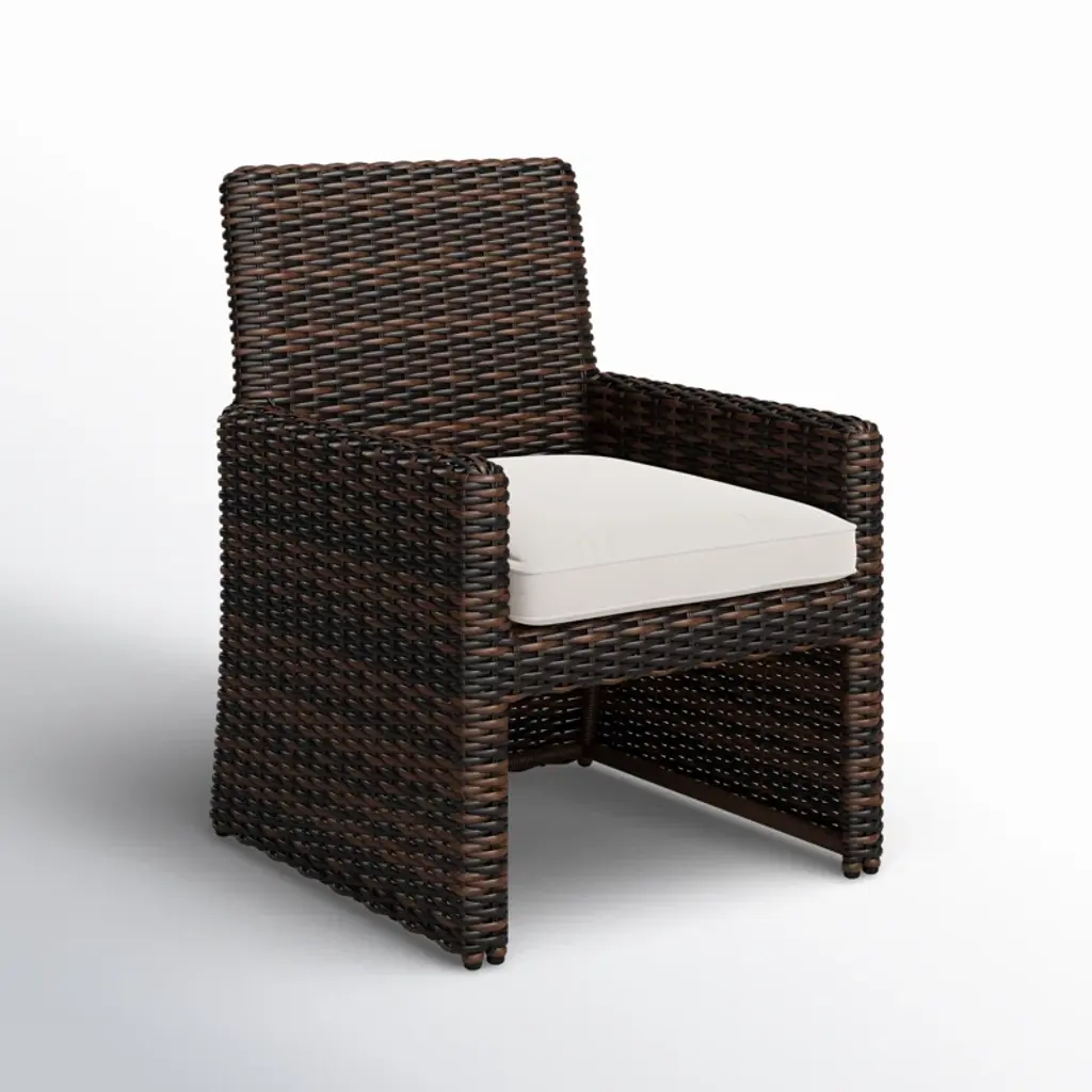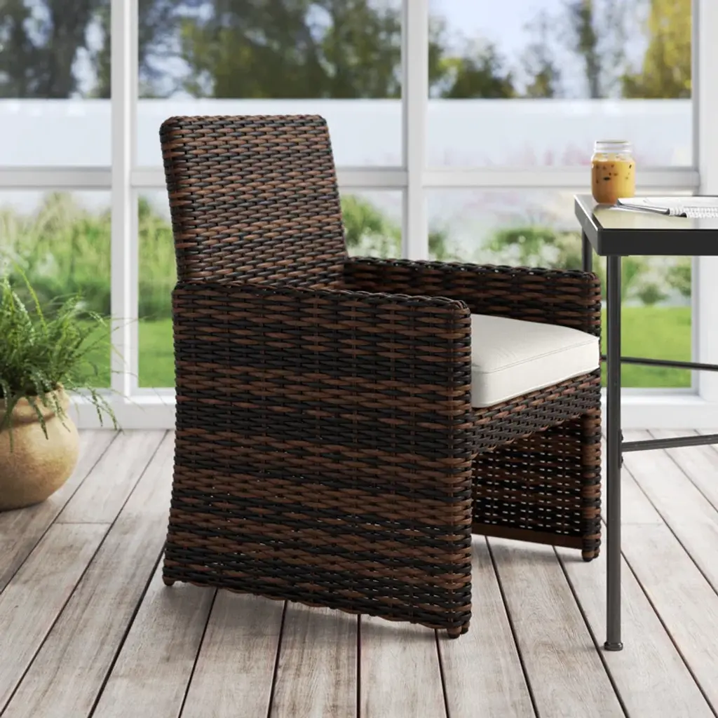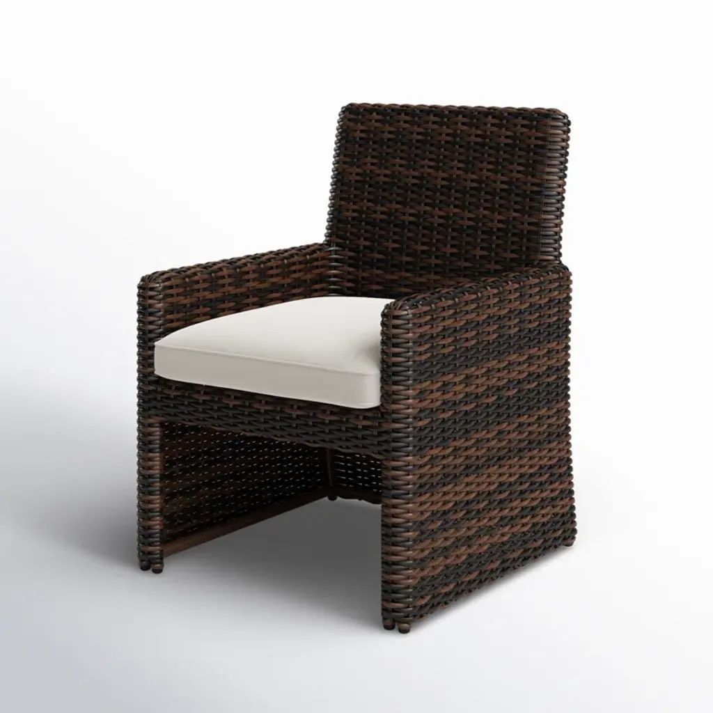 Add a touch of coastal flair to your dining space with this wicker and rattan dining chair. Designed for residential and commercial use, it features a comfortable seat made from virgin HDPE resin wicker and a cushion crafted from 100% Sunbrella acrylic fabric. The cushion is water-resistant, fade-resistant, and removable for easy cleaning. With a weight capacity of 400 lbs, this chair offers a cozy spot to enjoy meals with family and friends. Just give it a quick hose down to keep it looking fresh and ready for your next gathering.