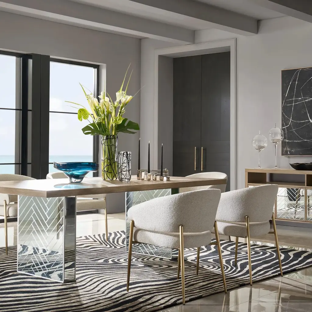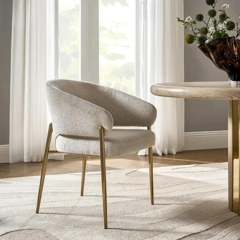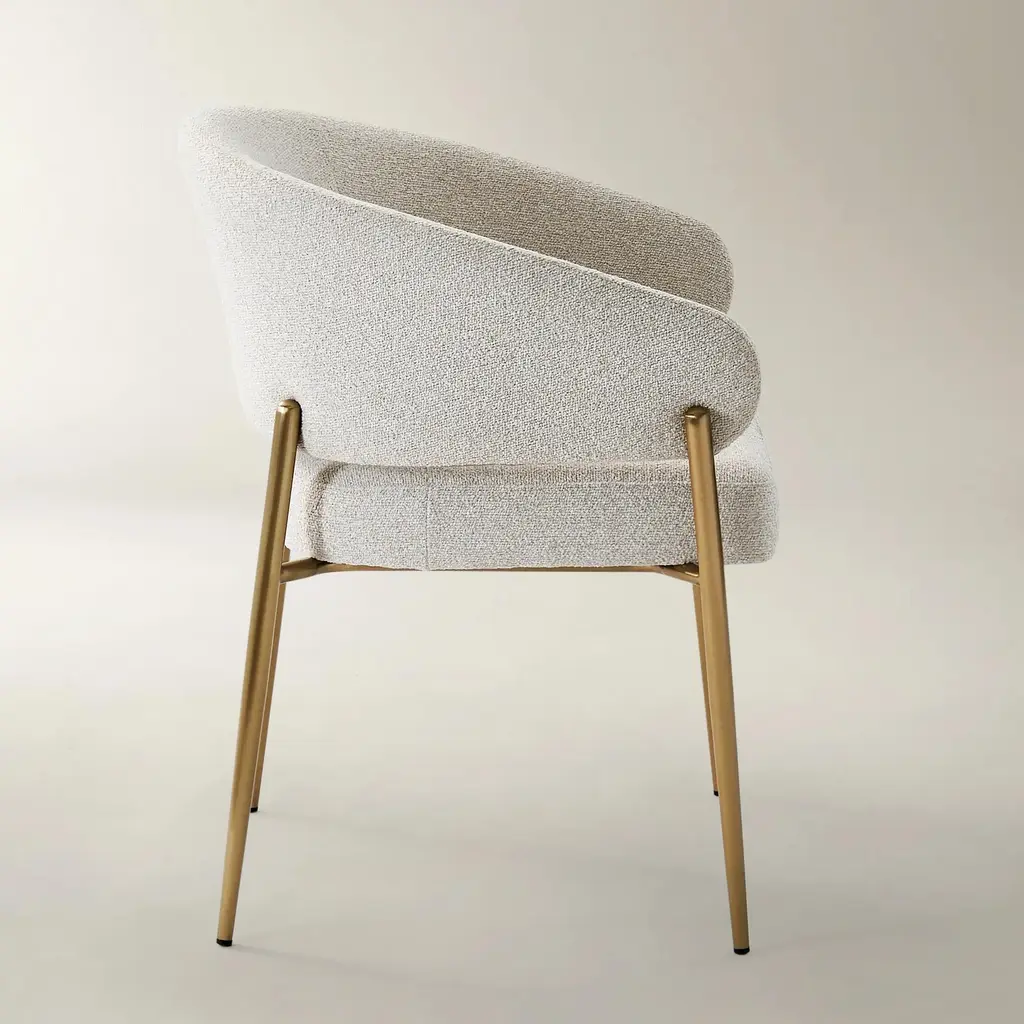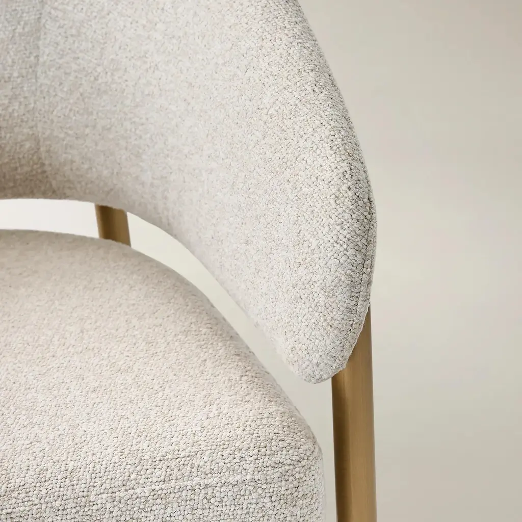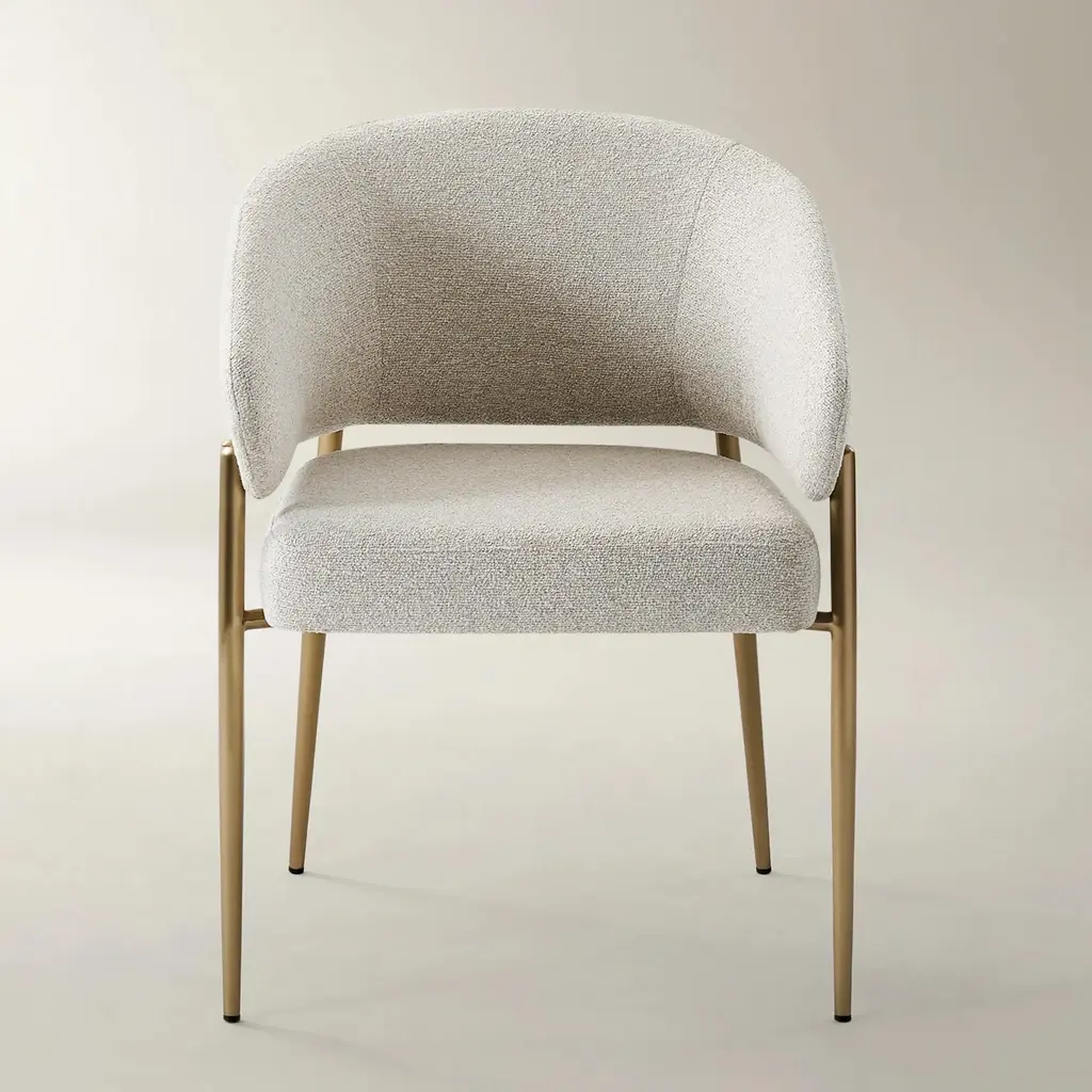 The Nara Dining Chair is a versatile and stylish addition to any dining room. Upholstered in a luxurious fabric and featuring a sleek brushed stainless steel frame, this chair exudes a sense of refined elegance. The curved backrest provides added comfort and support, making it perfect for both casual dining and more formal occasions.ZG Exclusive