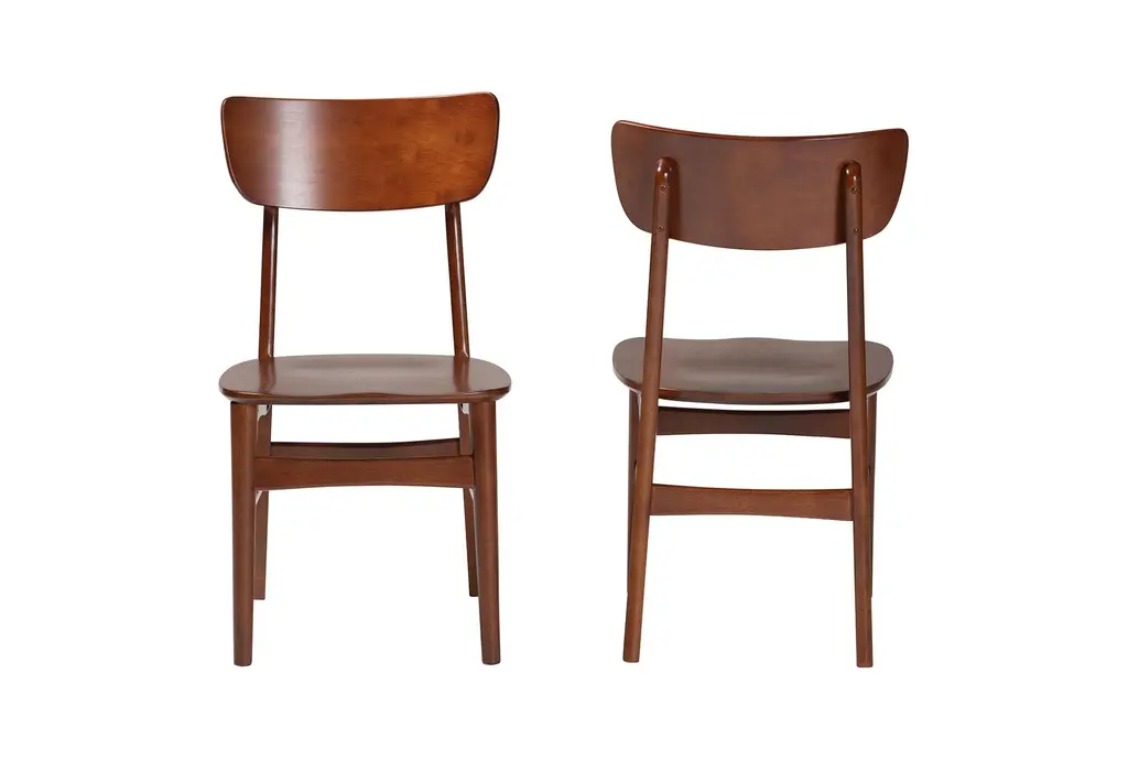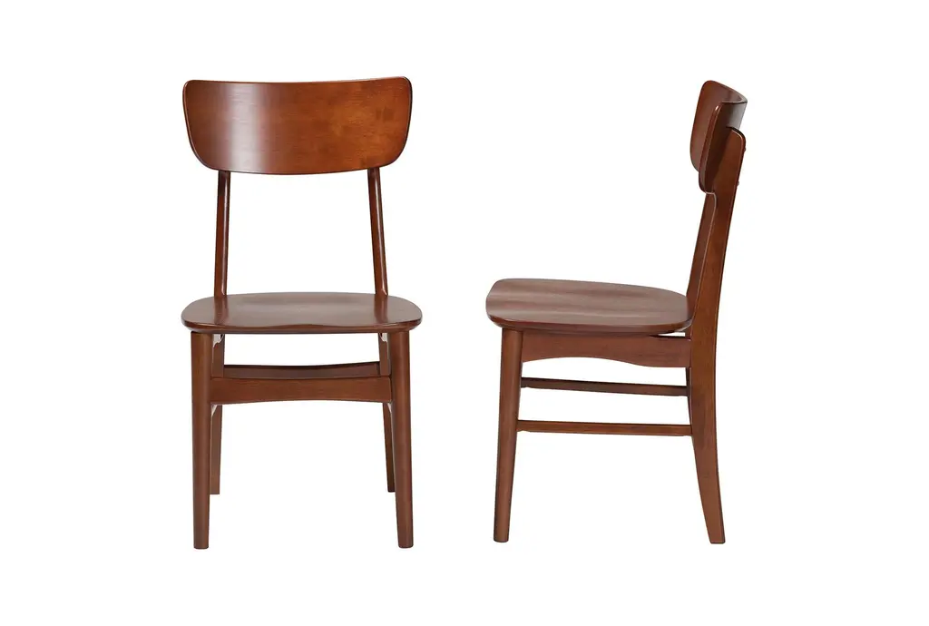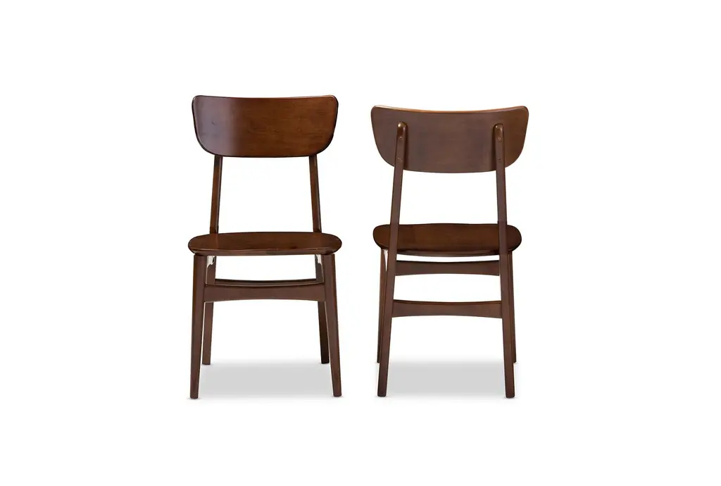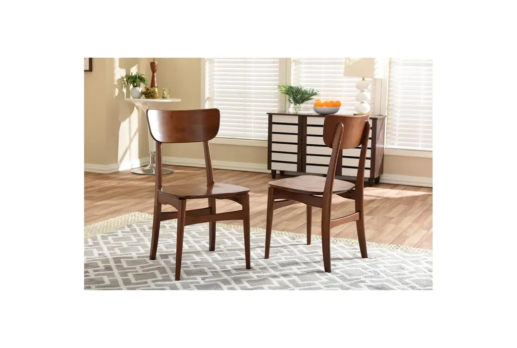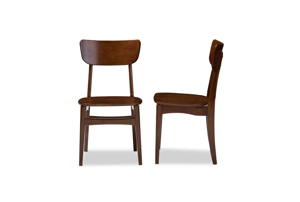 Enhance your dining experience with the Nathaniel Scandinavian Wood Dining Side Chair set. These modern, armless chairs feature a sleek, curved design that complements any dining room or kitchen decor. The dark brown "Walnut" finish brings a touch of warmth and sophistication to your space.