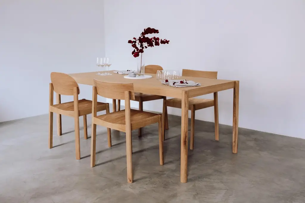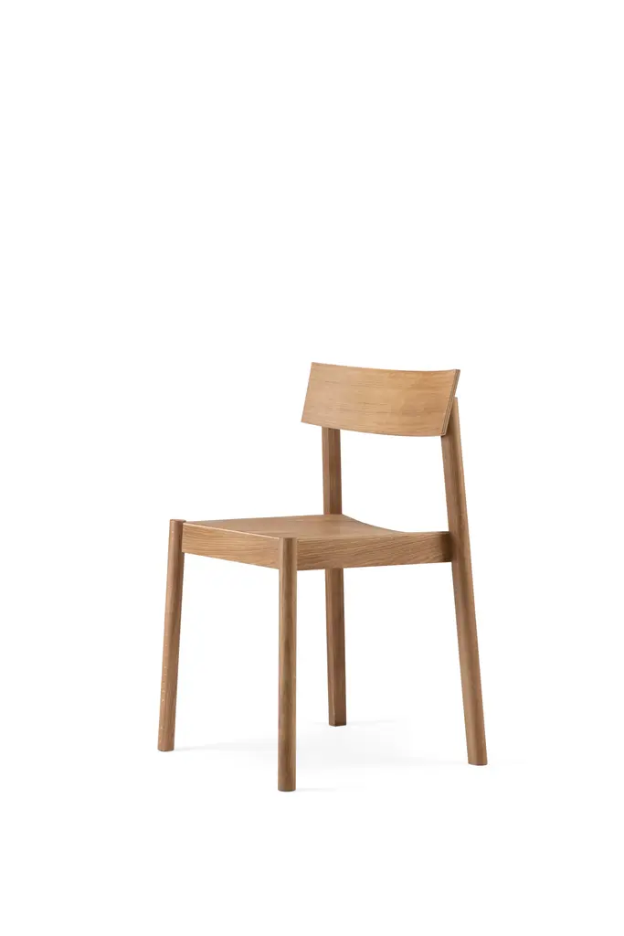 Citizen is a minimal dining chair with subtle details emphasizing its construction. The chair features rounded legs that offset from a square seat. Each leg casts a soft shadow on the body and renders a balanced posture of the chair. Effortless Citizen chair is crafted from sustainable, natural materials — solid oak and veneered plywood. Moreover, light and elegant Citizen chairs are easy to stack, allowing to quickly transform the space or store the chairs when not in use. Inclined seat and sturdy construction ensure the best comfort for whatever you are immersing into — from family gatherings at home to sophisticated dinners at the restaurant. The best part? The Citizen chair proposes two different backrests that give birth to two unique characters. As citizens may be good or bad, you can choose your side — square or round backrest chair in natural either black painted oak. Both these characters harmoniously mix and complement each other around a dining table, prompting the artistic atmosphere of the room. Labeled by Maker