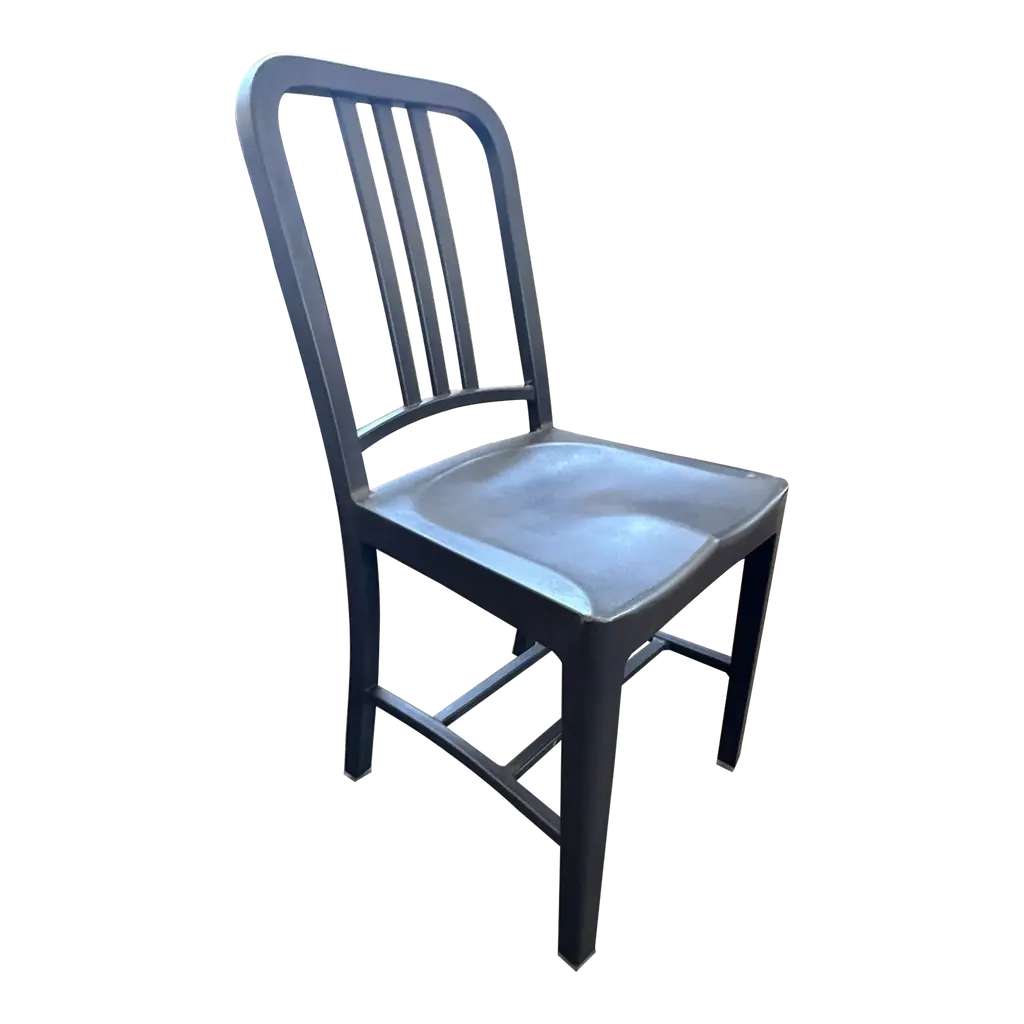 The usability of the Navy® Chair, made of recycled aluminum, welded and tempered for strength for use on submarines proved the material could be used in a variety of furnishings. After the creation of the original side chair in 1944, the US Government requested a high quality library chair. The request led to the design of the Navy® Chair, Wood Seat a recycled aluminum side chair complemented by a finished wood seat. Traditional homes and commercial environments are considered to be great spaces for the Navy® Chair, Wood Seat.