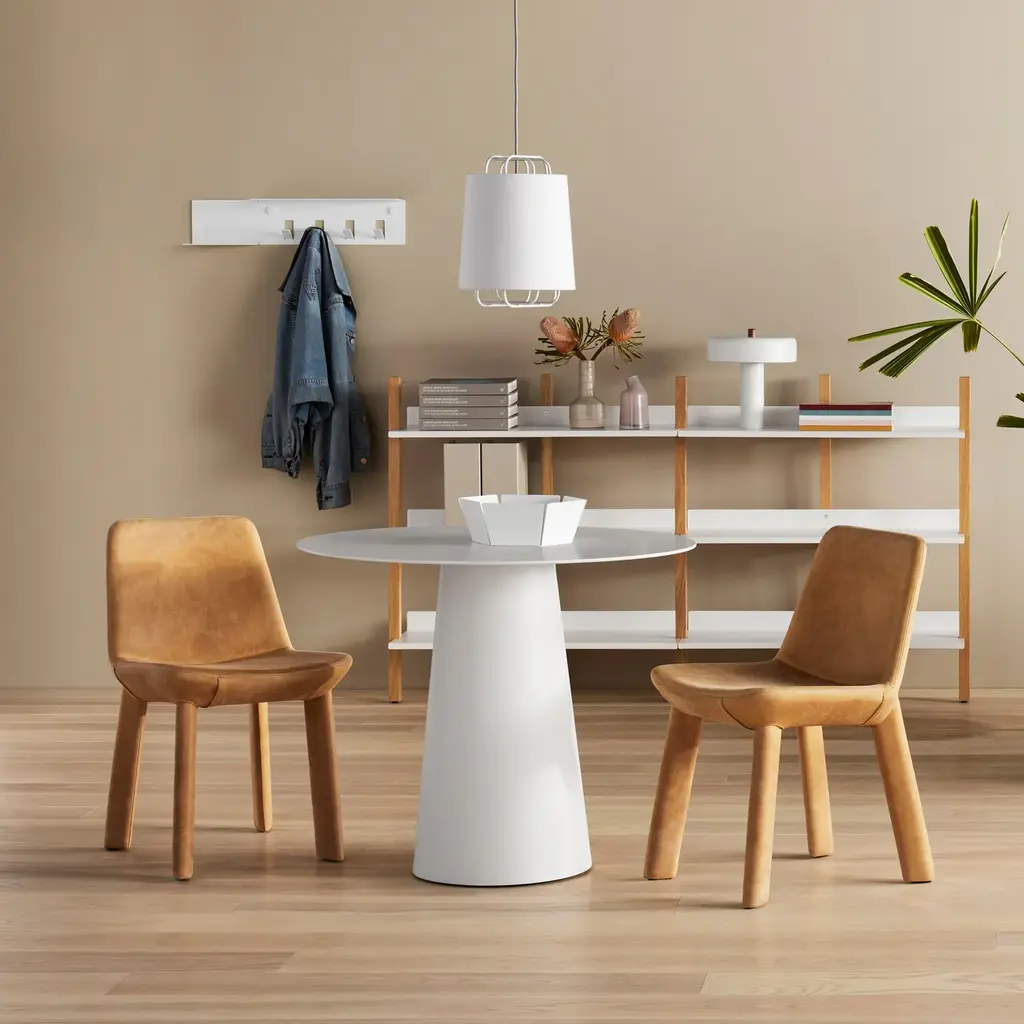 Completely upholstered from top to bottom, the Neat Dining Chair’s unique exterior conceals a sturdy construction of injected foam, a wood shell and metal legs. An endearing and comfortable combination of footie pajamas with a pinch of Muppet ™, Neat is designed to be as friendly to the posterior as it is to the eyes.