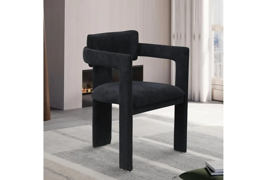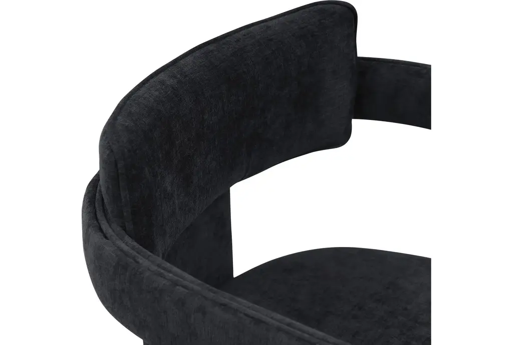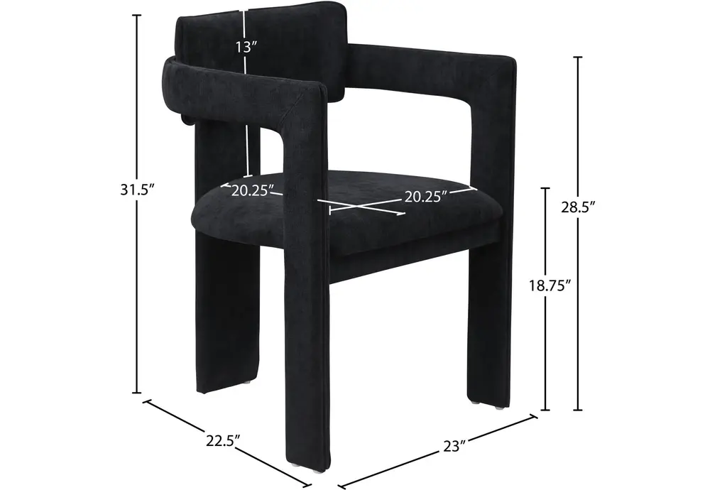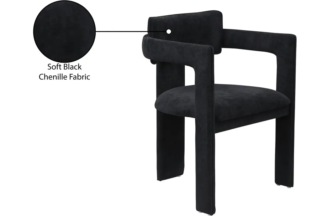 The Nena Black Chenille Upholstered Dining Chair Set Of 2 brings a touch of modern sophistication to your dining space. These chairs feature a curved design with arms, providing both style and comfort. The black chenille fabric adds a luxurious texture, making these chairs a standout addition to any room.