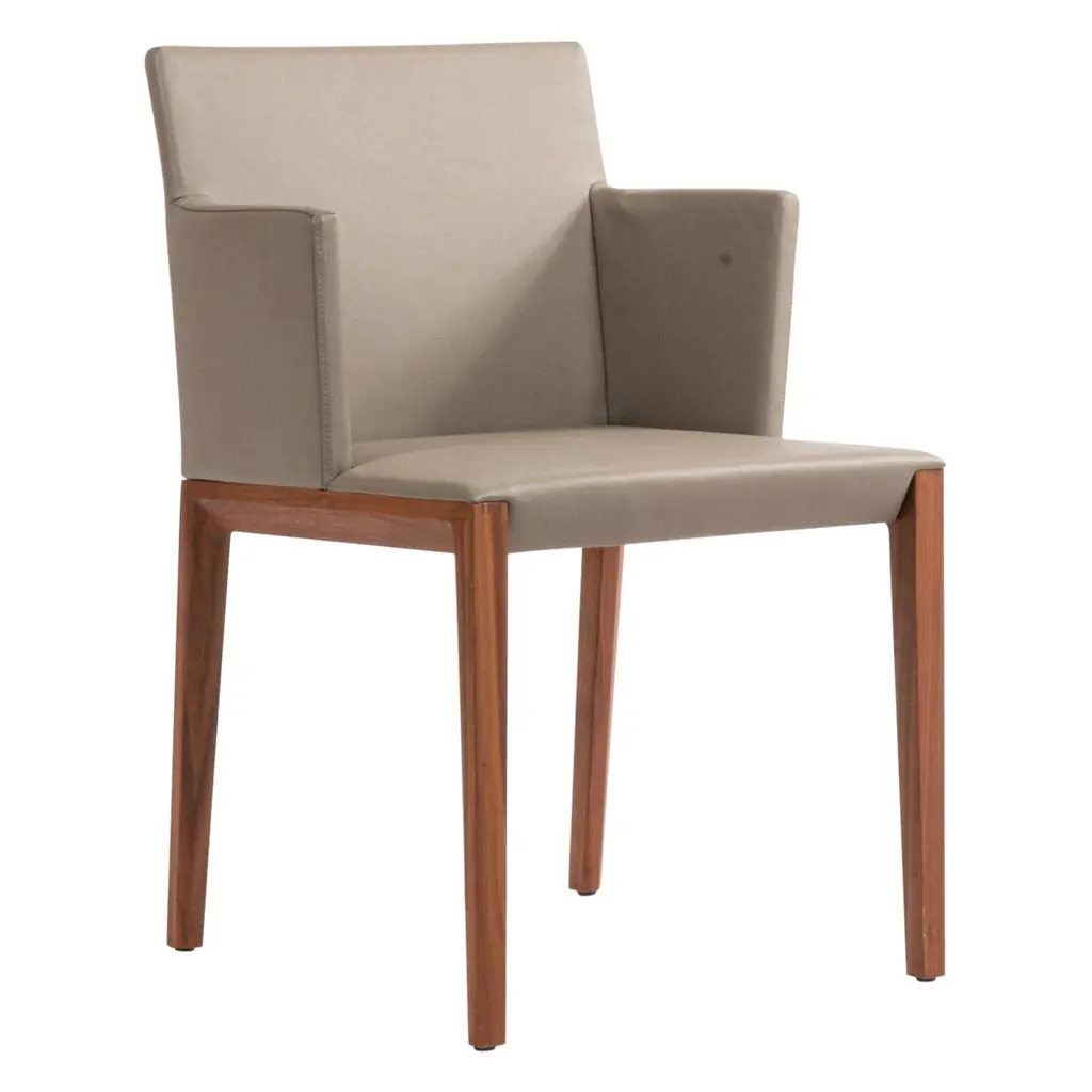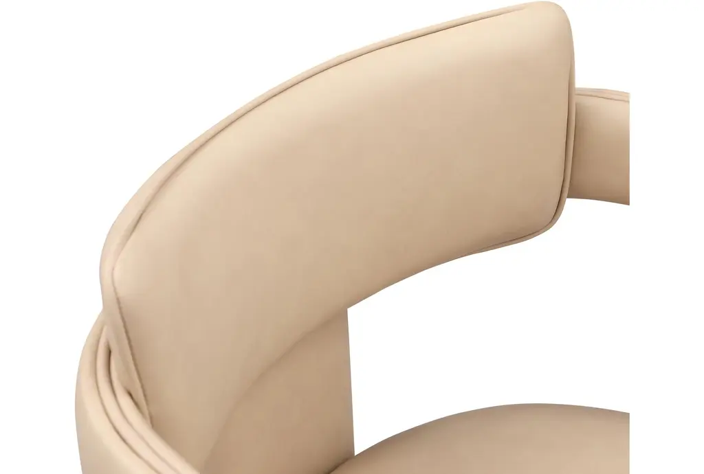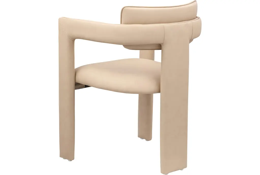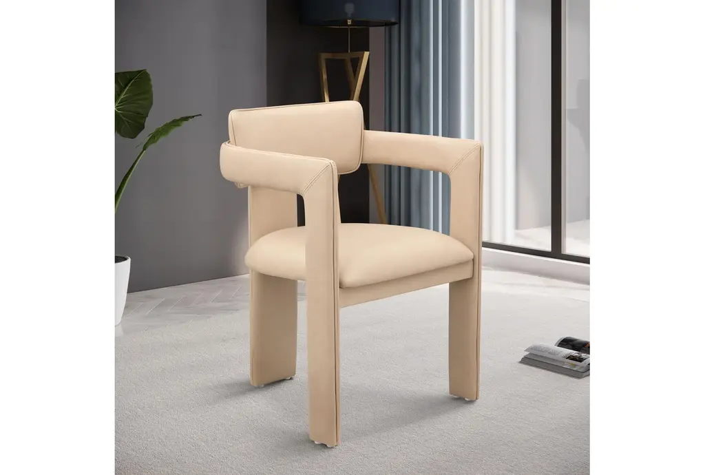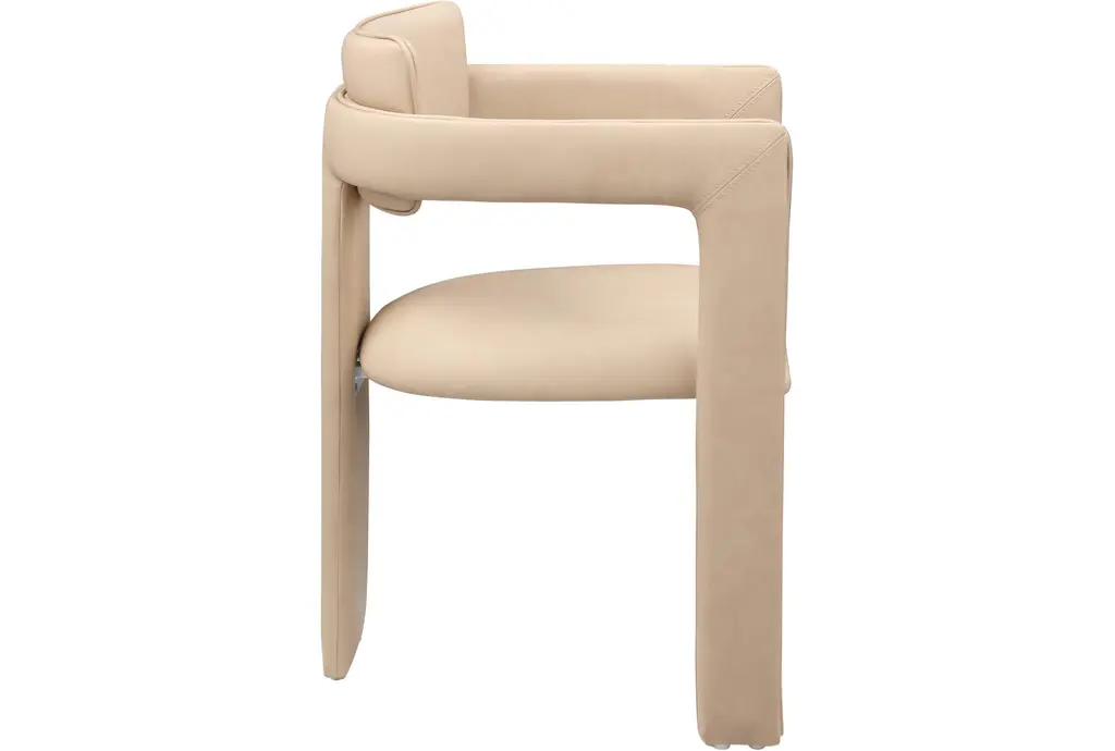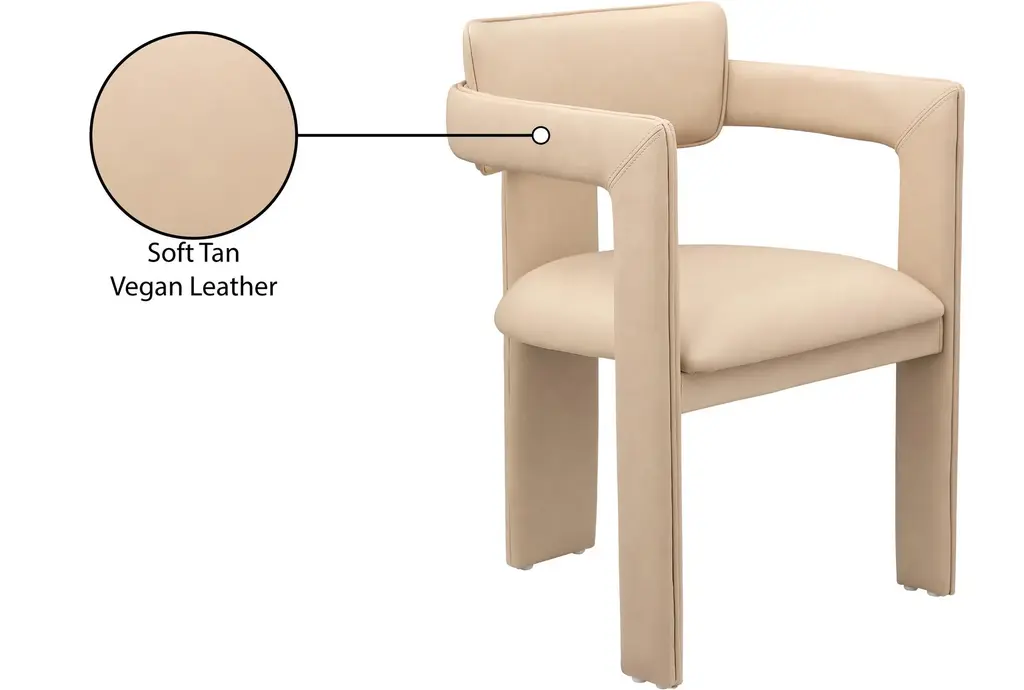 Enhance your dining experience with the Nena Tan Fabric Vegan Leather Dining Chair Set of 2. These modern chairs feature a curved design with supportive arms, making them a stylish and comfortable addition to any dining room, kitchen, or living room.