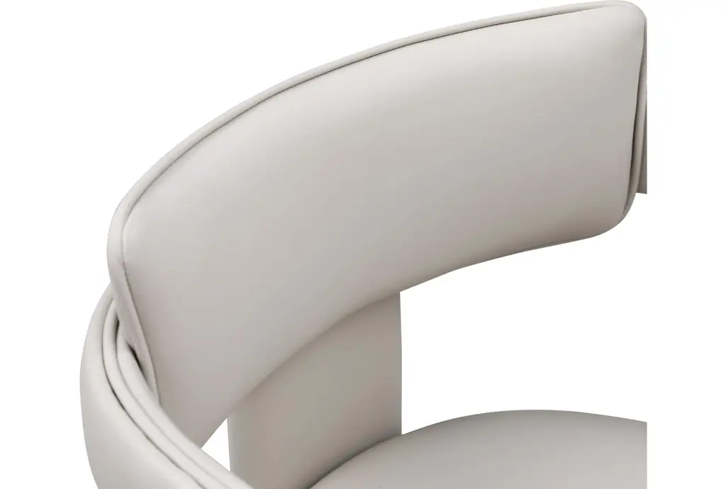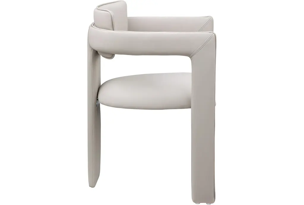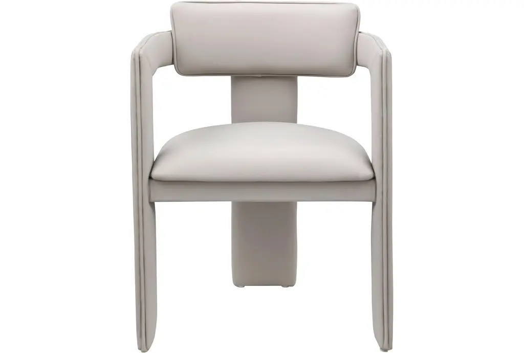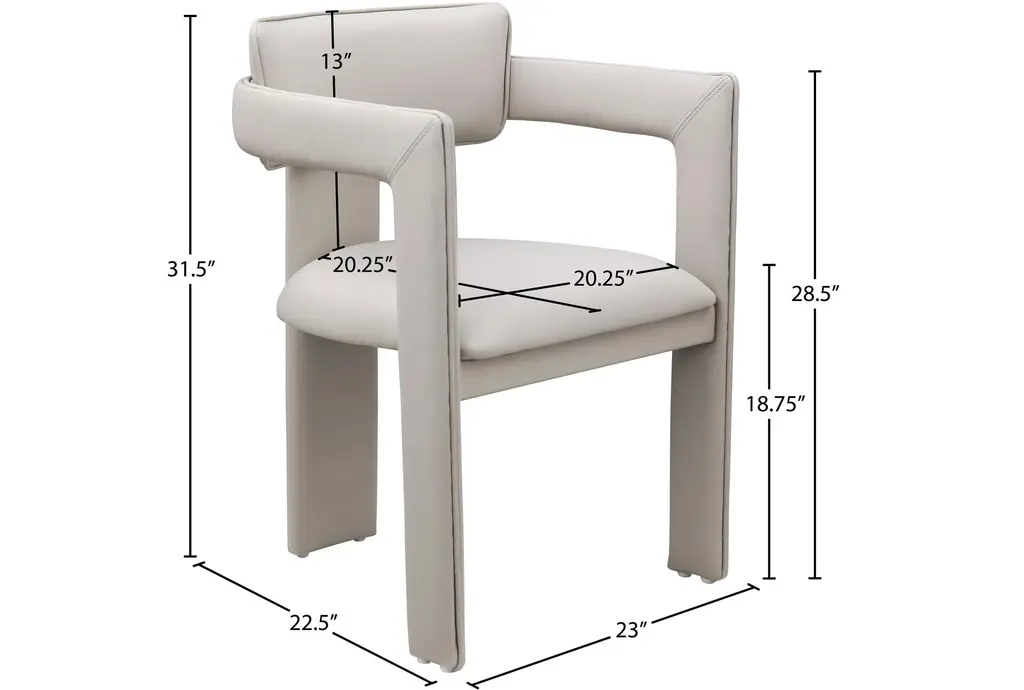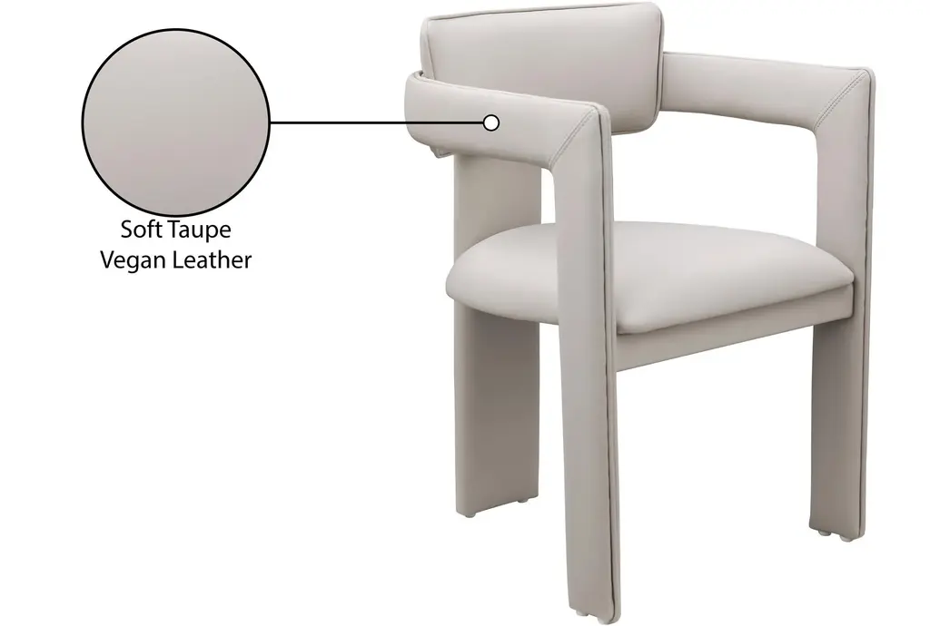 The Nena Taupe Vegan Leather Fabric Dining Chair Set of 2 brings a modern touch to your dining area. These chairs feature a natural tone and curved design, offering comfort and style. The set is perfect for both dining rooms and kitchens.