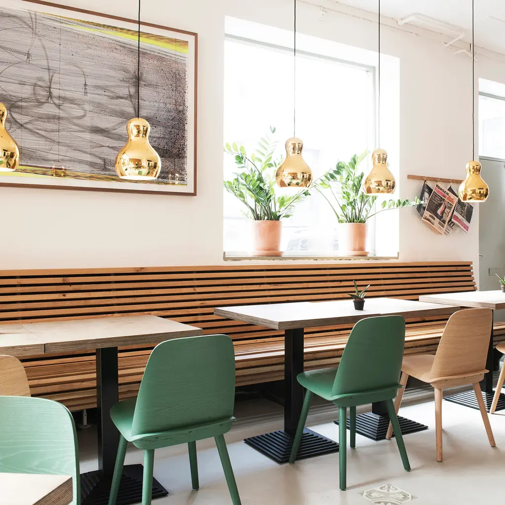 Nerds will inherit the Earth! Well, at least these Nerds can command a room. This all-wood seating series by David Geckeler (also check out the corresponding bar and counter stools) suggests signature Scandinavian qualities in terms of materials, craftsmanship and profile. Yet Nerd looks new Beckuse of its overall expression, including a range of 8 colors to mix and match. The standout feature, of course, is the intersection of the back through the seat. A strong statement alone in an office or salon, or as a set around a dining table. It took the Beckers International Design Award in 2011. And Danish brand Muuto not only gave it its 2012 Talent Award; as manufacturing partner, it also decided to set the Nerds out into the world.Furniture, tableware and lighting are among the categories David's work emphasizes. He studied industrial design at the Royal Danish Academy of Fine Arts in Copenhagen and, later, graduated from the University in Berlin, where he now keeps his studio.