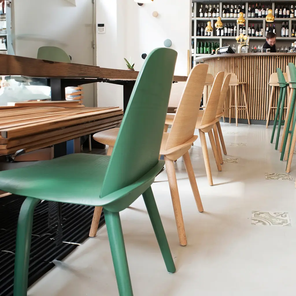 Nerds will inherit the Earth! Well, at least these Nerds can command a room. This all-wood seating series by David Geckeler (also check out the corresponding bar and counter stools) suggests signature Scandinavian qualities in terms of materials, craftsmanship and profile. Yet Nerd looks new Beckuse of its overall expression, including a range of 8 colors to mix and match. The standout feature, of course, is the intersection of the back through the seat. A strong statement alone in an office or salon, or as a set around a dining table. It took the Beckers International Design Award in 2011. And Danish brand Muuto not only gave it its 2012 Talent Award; as manufacturing partner, it also decided to set the Nerds out into the world.Furniture, tableware and lighting are among the categories David's work emphasizes. He studied industrial design at the Royal Danish Academy of Fine Arts in Copenhagen and, later, graduated from the University in Berlin, where he now keeps his studio.