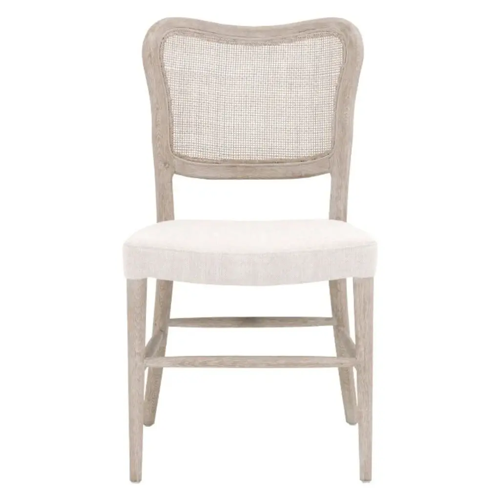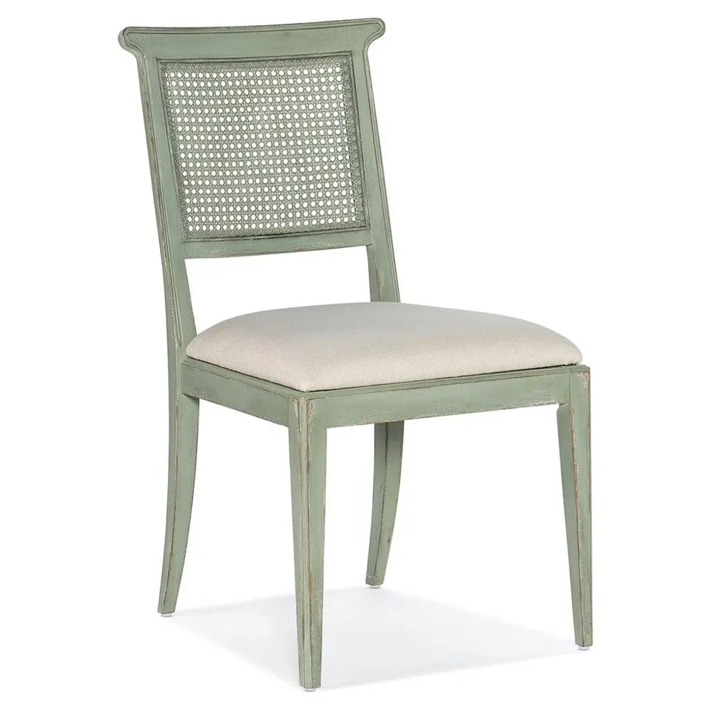 Nestryl French Cream Performance Green Wood Woven Cane Back Dining Side Chair