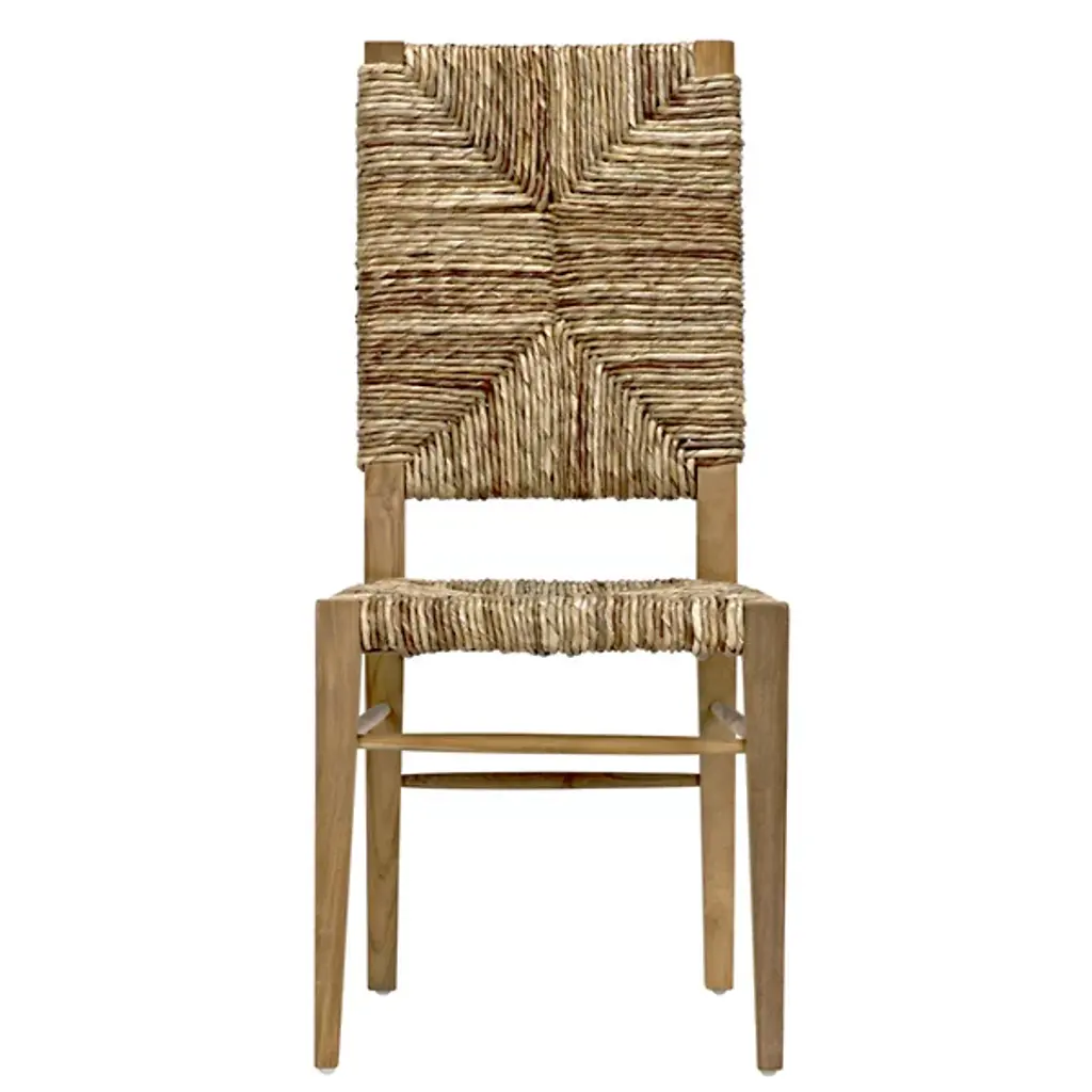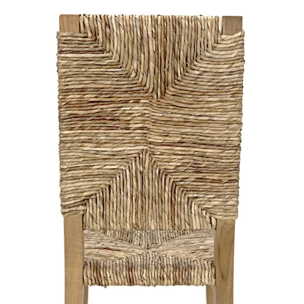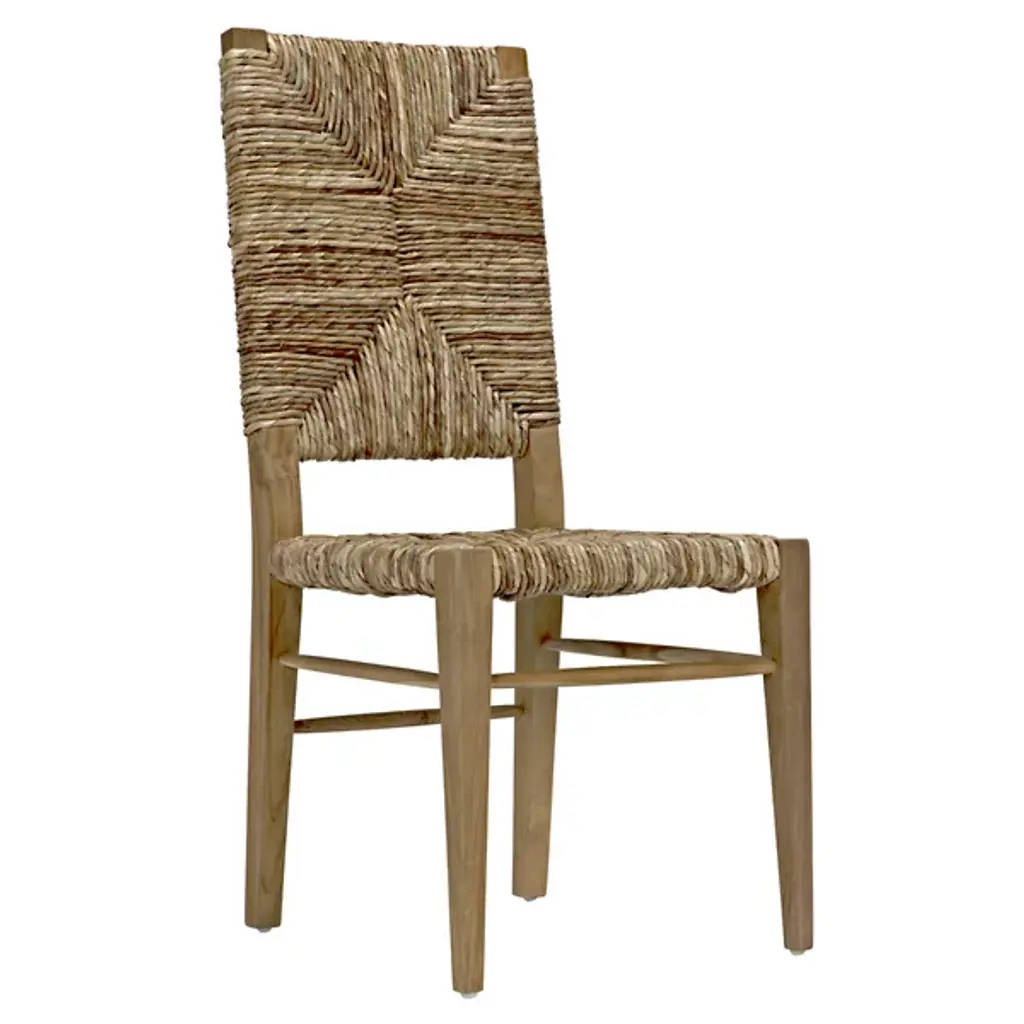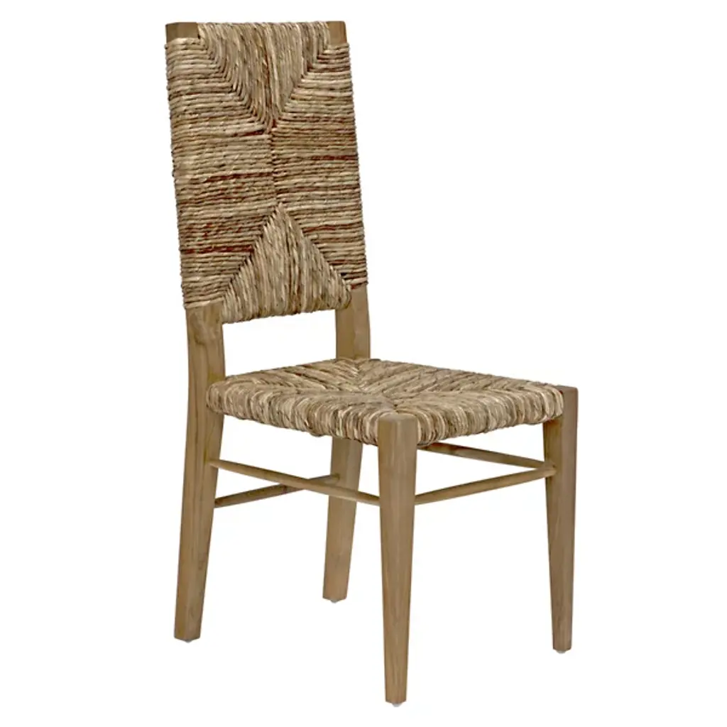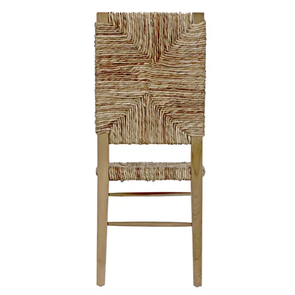 The Neva Dining Chair from Noir showcases expertly woven rush seagrass arranged in geometric patterns that create both texture and structural support. The tightly woven seagrass forms intricate designs across the seat and backrest, demonstrating traditional weaving techniques passed down through generations of craftspeople. Polished teak provides the structural framework, its smooth finish contrasting beautifully with the organic texture of the woven elements. This chair works particularly well in coastal-inspired dining rooms, breakfast nooks, or casual eating areas where natural materials help establish a relaxed atmosphere.