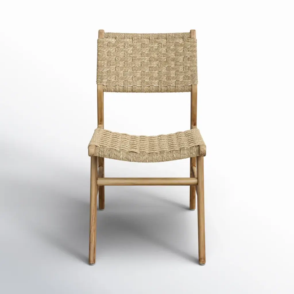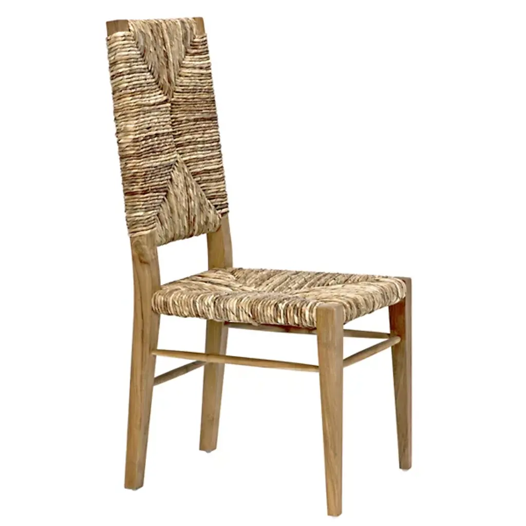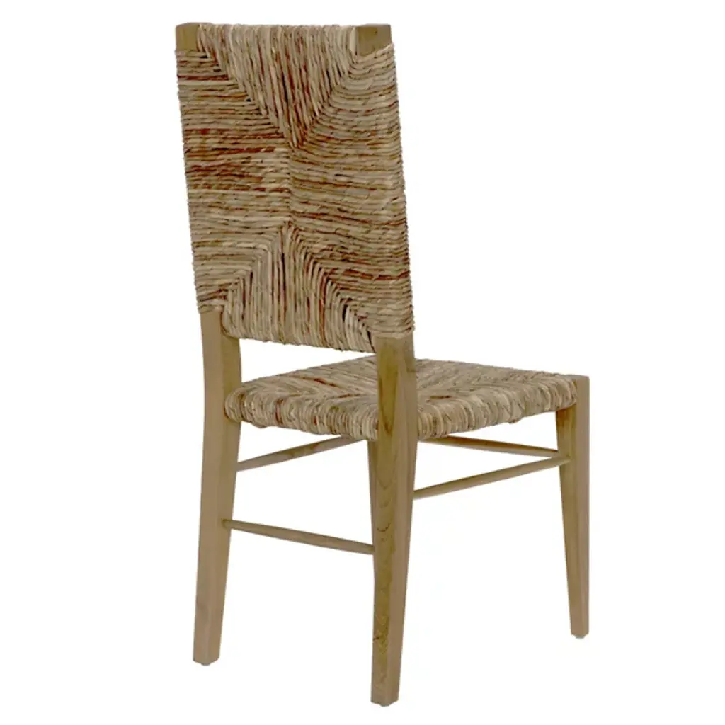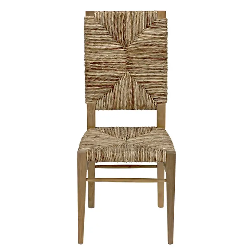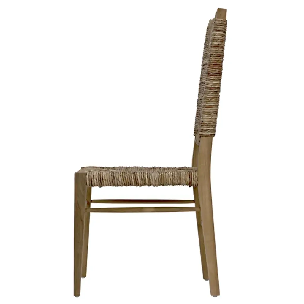 The Neva Dining Chair from Noir showcases expertly woven rush seagrass arranged in geometric patterns that create both texture and structural support. The tightly woven seagrass forms intricate designs across the seat and backrest, demonstrating traditional weaving techniques passed down through generations of craftspeople. Polished teak provides the structural framework, its smooth finish contrasting beautifully with the organic texture of the woven elements. This chair works particularly well in coastal-inspired dining rooms, breakfast nooks, or casual eating areas where natural materials help establish a relaxed atmosphere.