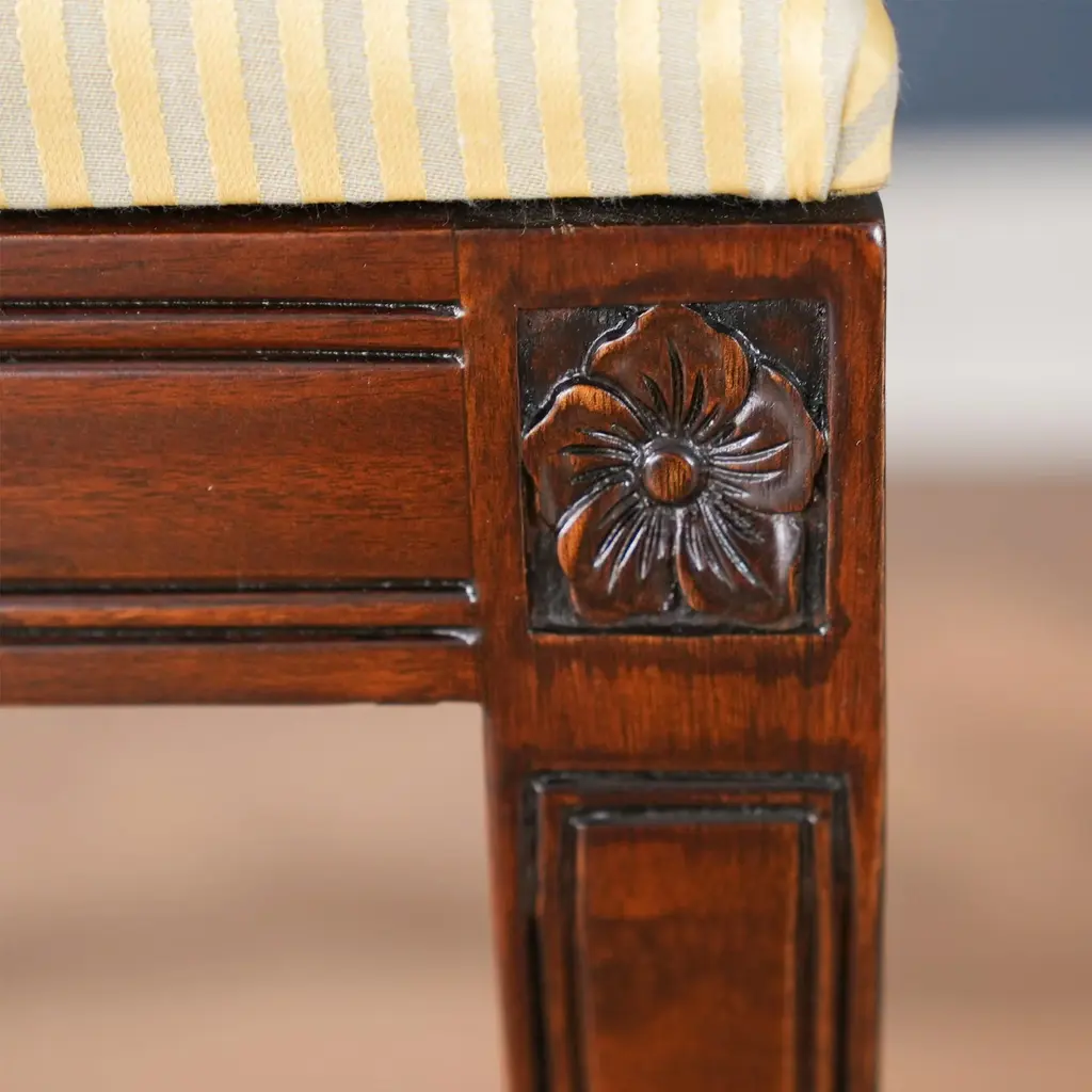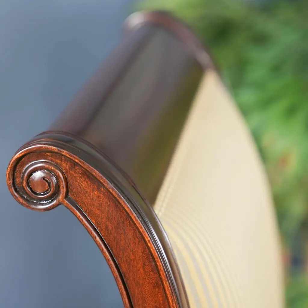 The Niagara Furniture Regency Upholstered Side Chair combines a super simple design with sweeping lines and finely executed details to help make this great quality chair very popular. Finely hand carved details on the ears and legs of the Regency Upholstered Side Chair distinguish it from the mass produced counter parts found in box stores, scrolled arms and saber legs give a timeless look of elegance suitable for any living space. Ready to use with our most popular fabric the upholstery can be easily swapped out due to our use of the drop in seat feature. The seat can be removed with four screws, recovered and refastened quickly. Seat height approximately 20 inches. Side Chair Measures 22″w x 27″d x 40″h metric 56 69 102