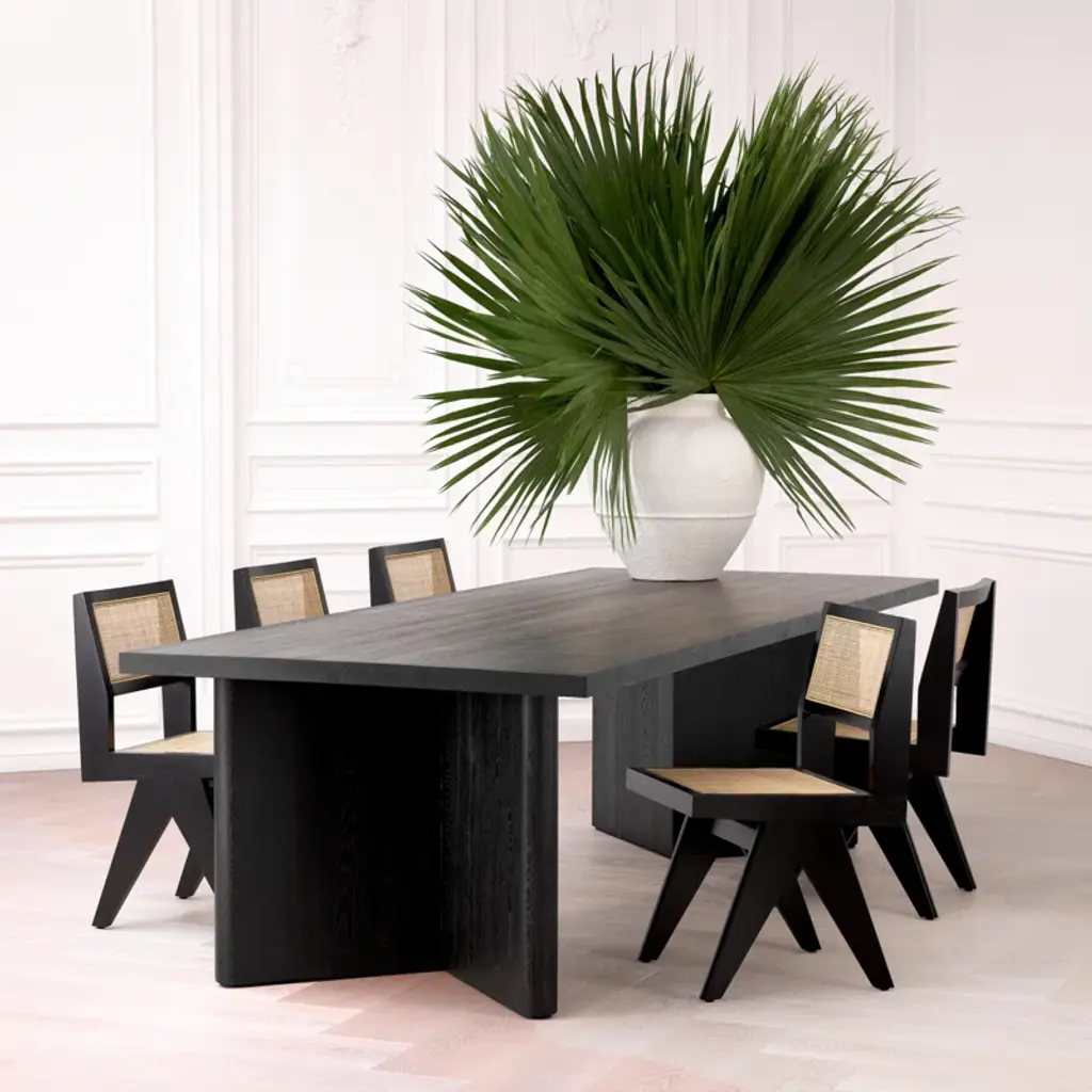 The classic Niclas Dining Chair has the minimalist appeal of iconic Chandigarh furniture. Crafted from solid wood, this beautiful chair features V-shaped legs that are characteristic of celebrated vintage designs from the 1950s and 1960s. The openwork seat and backrest comprise a handwoven rattan cane.
