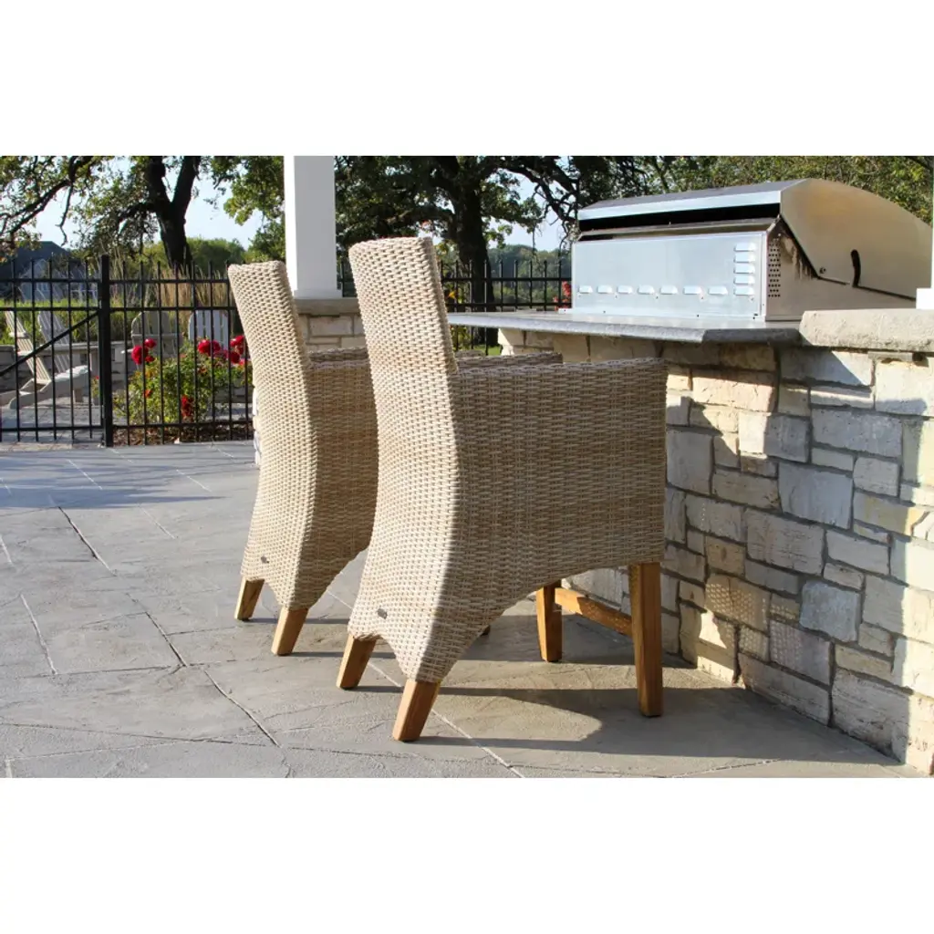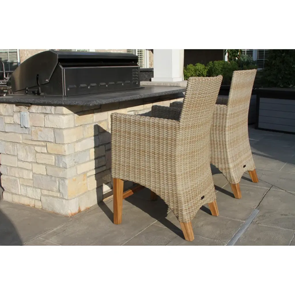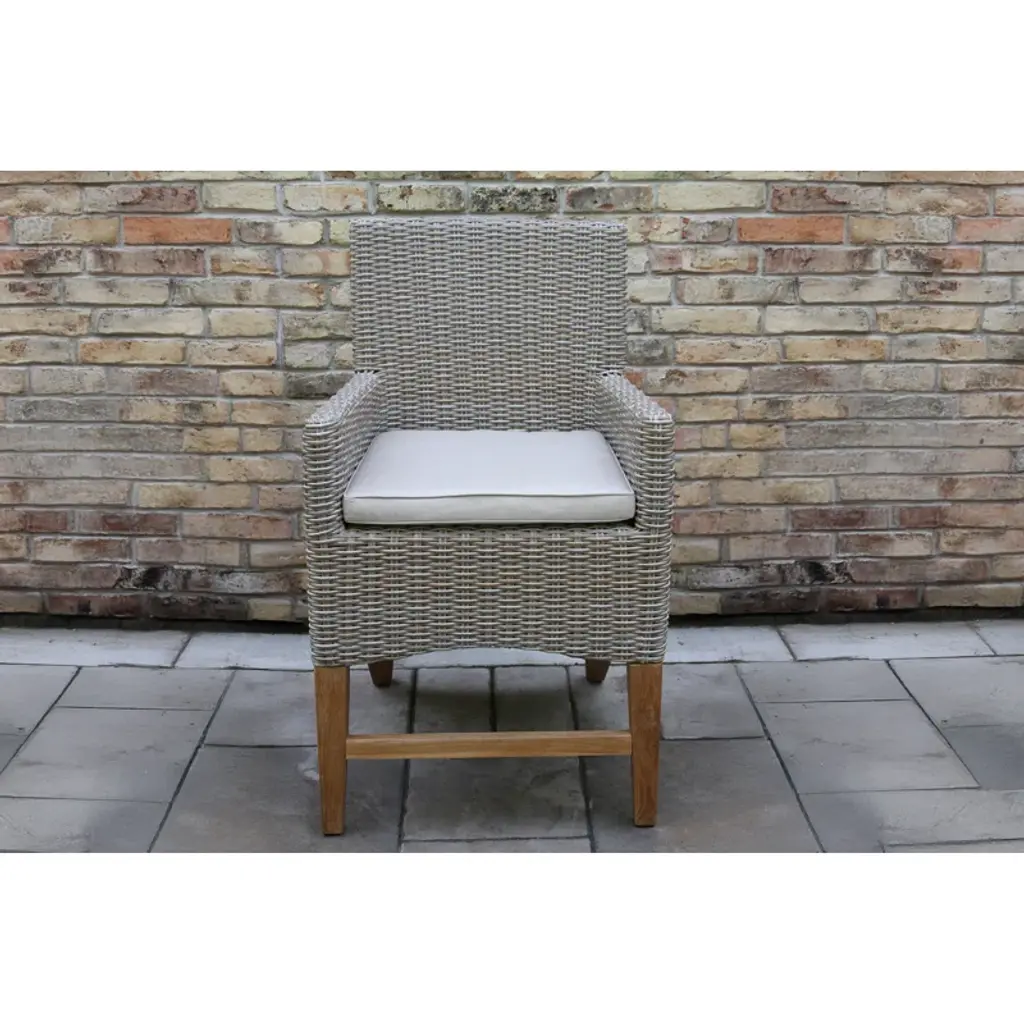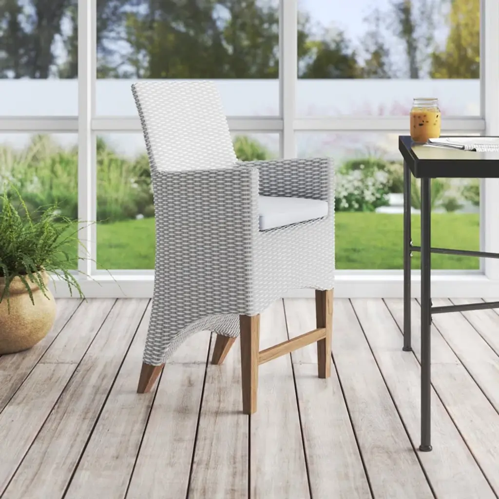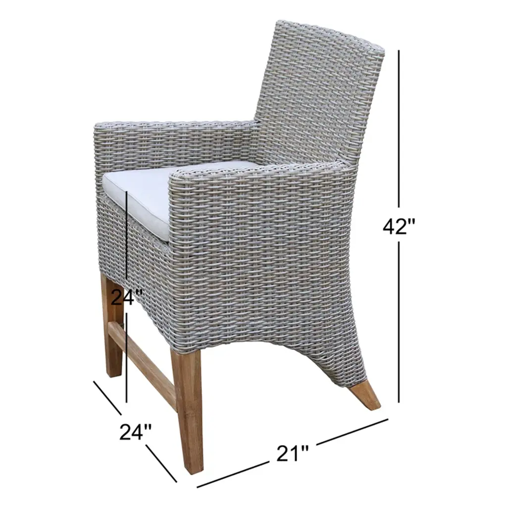 Our patio armchair is the perfect blend of all-weather wicker and solid teak wood, making it the perfect choice for your back patio or porch. The teak legs with footrest and foam-filled seat cushion will provide comfort while you lounge, and the gray wicker rattan adds a touch of classic style. Plus, this dining chair comes fully assembled, so you can enjoy it right out of the box.