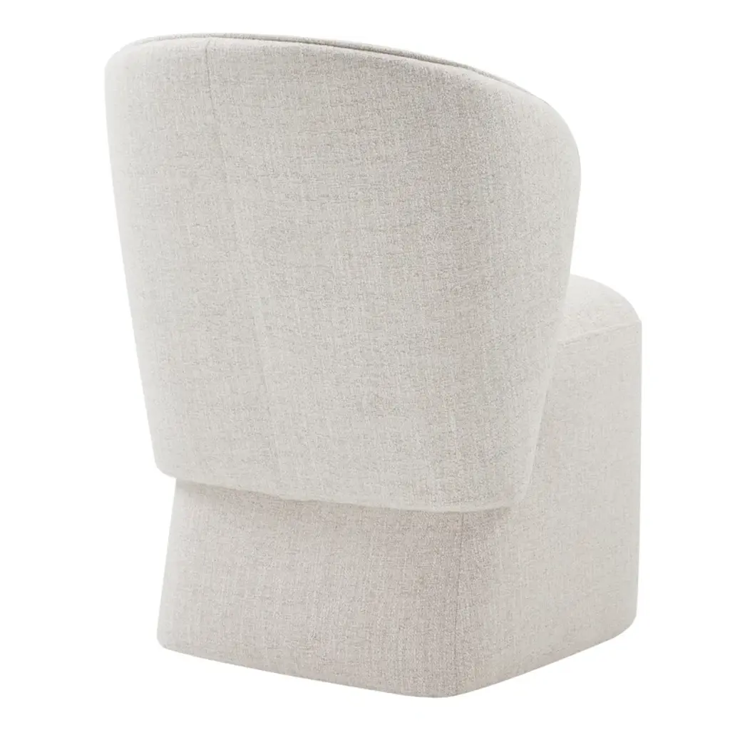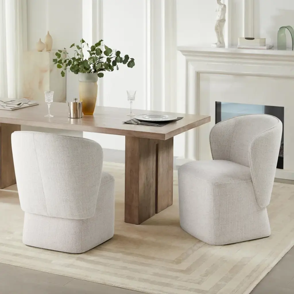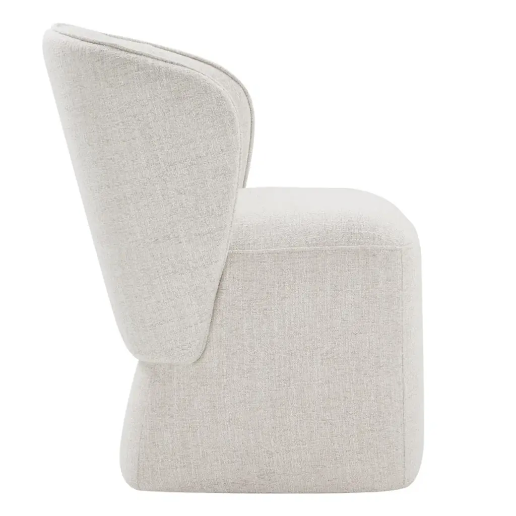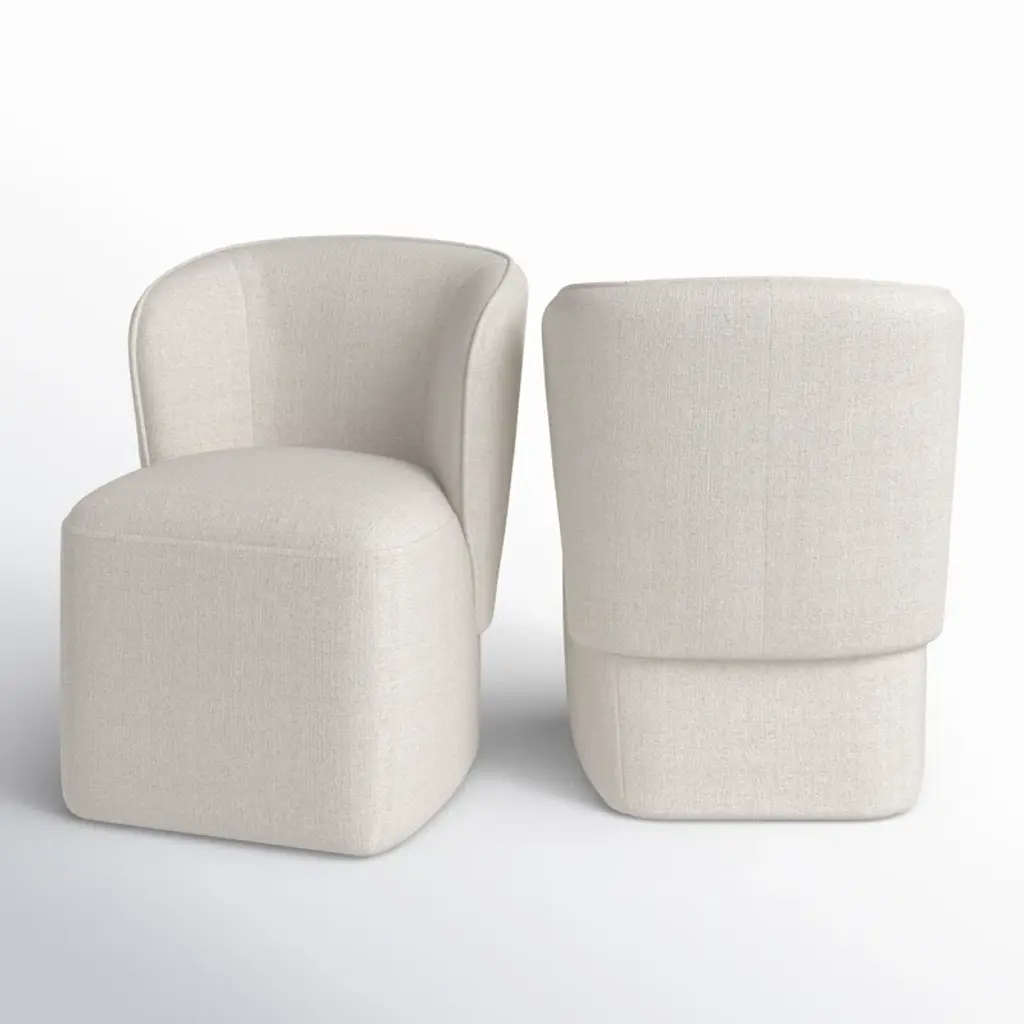 Your home should be a reflection of your personality. With its sophisticated, approachable, and functional design, the upholstered dining chair will do just that. Perfect for those looking to add something special to their space, the cube-shaped frame is contemporary and fun. Fully upholstered in a neutral, easy-to-clean upholstery, this chair looks great from every angle. The barrelback curves around you, so you can sit back supported while you converse. High-density foam and fiber cushioning create a comfortable sitting experience. Kiln-dried wood and quality techniques, like mortise and tenon joints, give the frame durability and longevity. Effortlessly transport this chair, including over carpet, with the out-of-sight caster wheels. Whether around the dining table, in the living room, or wheeled in your home office, the versatility and chic style of the dining chair will instantly transform your room.