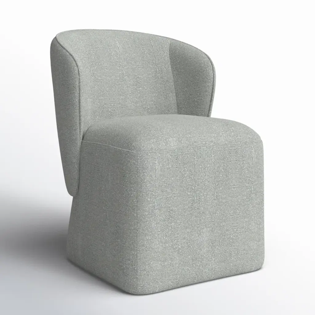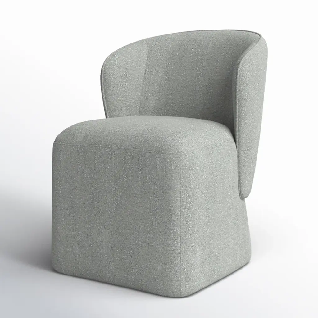 This dining chair features a base with convenient castor wheels – so it’s easy to switch up your seating arrangements. It showcases a streamlined silhouette wrapped in generously padded tweed upholstery that resists tearing. Plus, this chair arrives fully assembled + ready to roll.