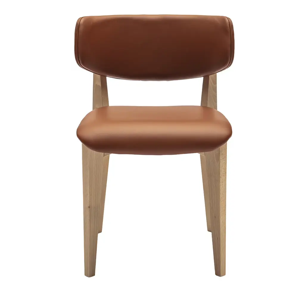 The Nikita Dining Chair brings retro flair with its Memphis-inspired lines, earthy wood finish, and sleek silhouette. Upholstered in easy-clean vegan leather with plush foam seating, it’s equal parts style, comfort, and low-maintenance cool—available in cream or saddle brown.