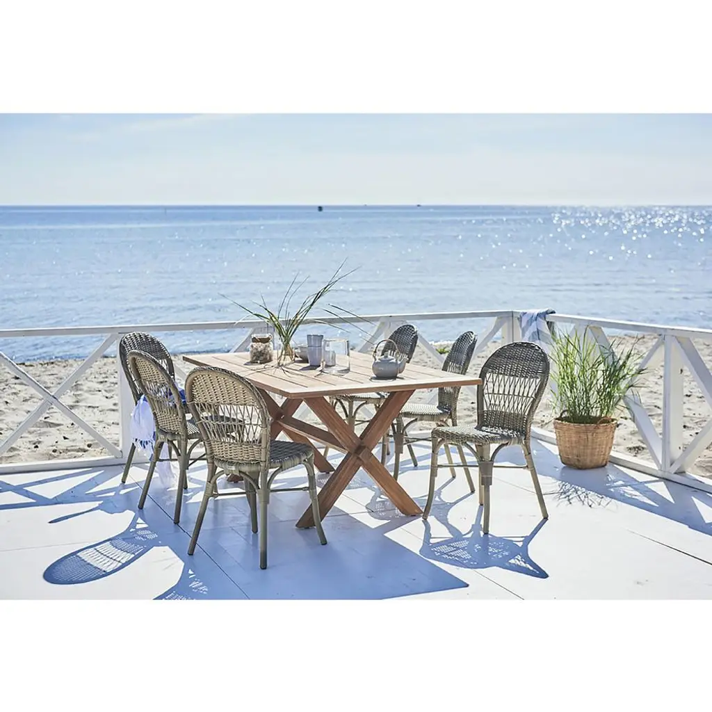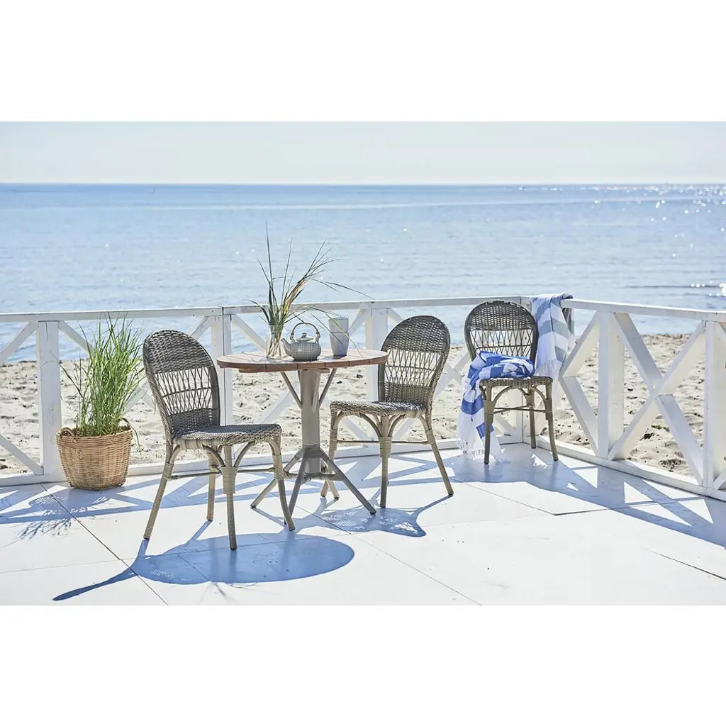 Noah Coastal Beach Brown Woven Faux Rattan Outdoor Dining Side Chair