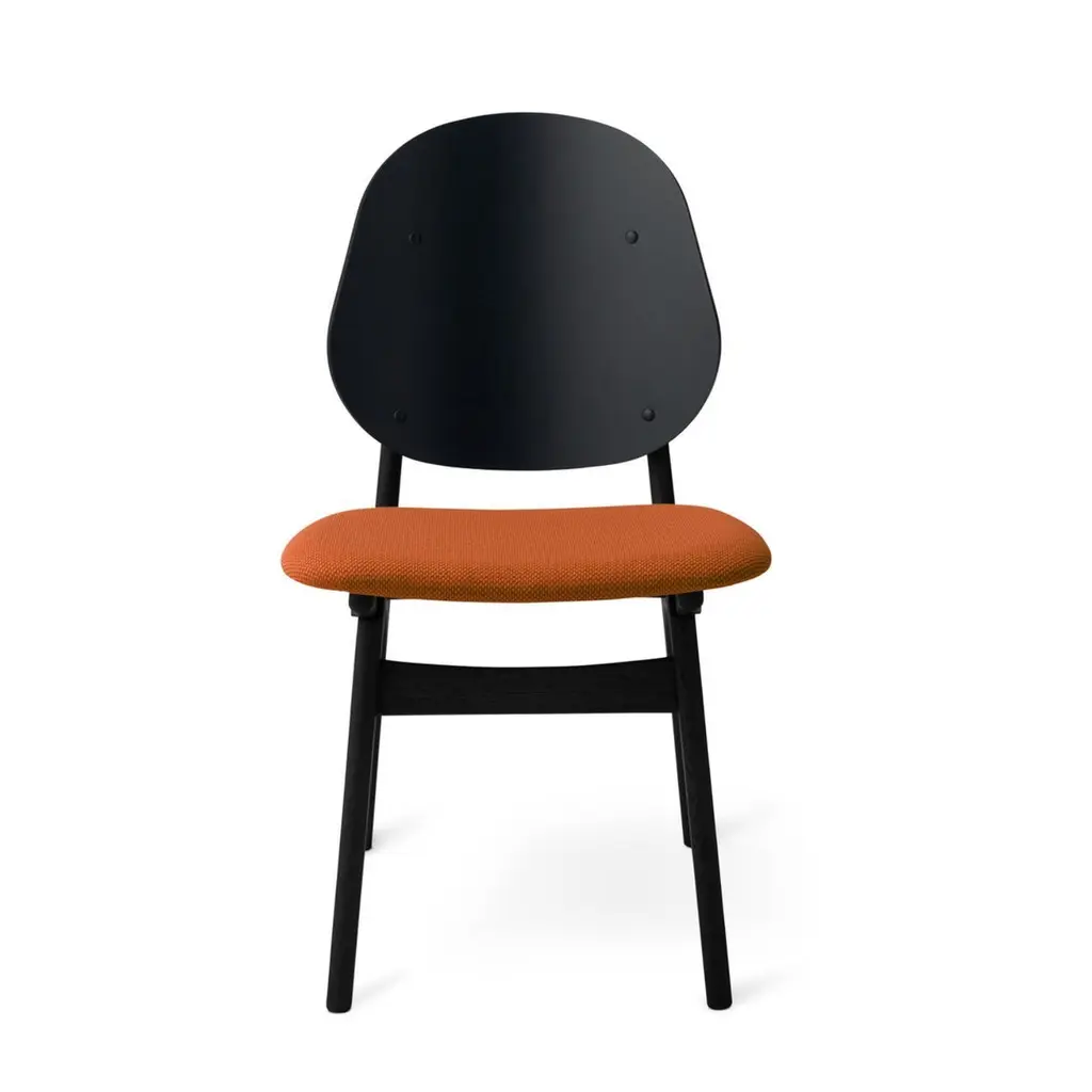 Noble chair black lacquered beech terracotta by Warm NordicDimensions: D55 x W47 x H 85 cmMaterial: Black lacquered solid beech, Veneer seat and back, Textile upholstery.Weight: 7.5 kgAlso available in different colours and finishes.An elegant and 'noble' designer chair created in the 1950s by the acclaimed furniture designer, Arne Hovmand-Olsen. The Noble dining chair is a classic beauty that transports the craftsmanship and aesthetics of Danish modernism into the contemporary dining room or sociable kitchen. Noble's high back and its distinctive details highlight the beautiful qualities of the wood. The seat of the chair is available in upholstery or leather, each of which in its own way harmonises with the noble wood, underscoring the timeless appearance of the Danish-manufactured dining chair. Choose from several different exclusive furnishing fabrics from the likes of Kvadrat in carefully selected shades from the Warm Nordic universe, or the highest quality black or natural leather. The frame is available in several exclusive types of wood with various classic surface treatments and colour expressions.Warm Nordic is an ambitious design brand anchored in Nordic design history and with a timeless, aesthetic style that inspires you to appreciate the little things in life. The company is the result of several years’ intense work on developing a new design brand with design history, quality and personality at its core. Warm Nordic boasts a colourful and charming universe of furniture, lamps and accessories full of personality. Our designs encapsulate the Nordic spirit, which in its essence is timeless, inclusive and warm.