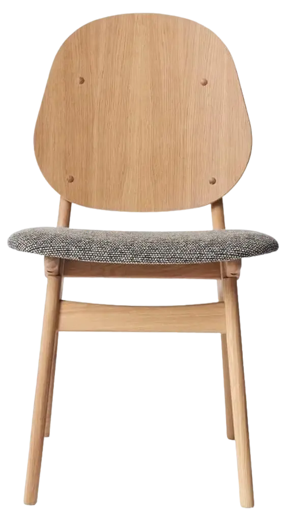 An elegant and ?noble? designer chair created in the 1950s by the acclaimed furniture designer, Arne Hovmand-Olsen. The Noble dining chair is a Classic beauty that transports the craftsmanship and aesthetics of Danish modernism into the contemporary dining room or sociable kitchen. Noble?s high back and its distinctive details highlight the beautiful qualities of the wood. The seat of the chair is available in upholstery or leather, each of which in its own way harmonises with the noble wood, underscoring the timeless appearance of the Danish-manufactured dining chair. Choose from several different exclusive furnishing fabrics from the likes of Kvadrat in carefully selected shades from the Warm Nordic universe, or the highest quality black or natural leather.Additional information:Materials: Veneer wood and upholsteryAvailable top finish: Pale rose, minty grey, dark cyan, butternut, terracotta, wine, black, brick red, rusty rose, rusty sprinkles, leather/camel, nature, desert yellow and dark turquoiseDimensions: W.48.5 x D. 55.5 x H. 85.5 cmSeat height 45 cm.