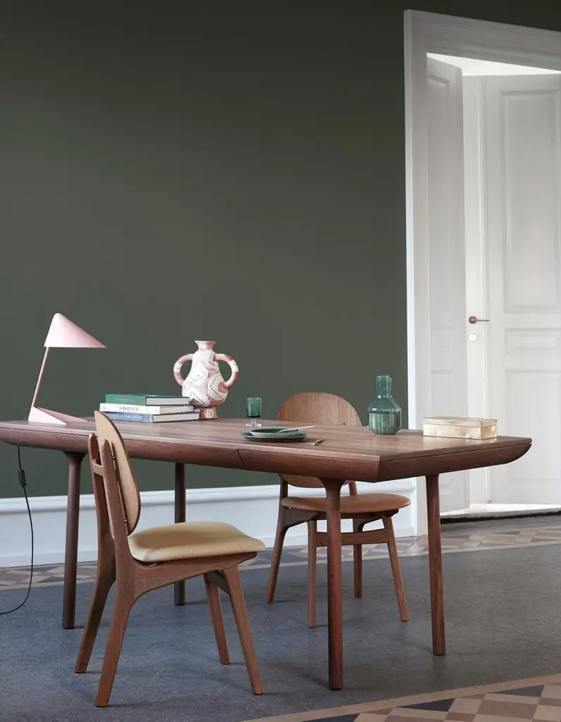 Noble chair teak oiled oak rusty rose by Warm NordicDimensions: D 55 x W 47 x H 85 cmMaterial: Teak oiled solid oak, Veneer seat and back, Textile upholstery.Weight: 7.5 kgAlso available in different colours and finishes.An elegant and 'noble' designer chair created in the 1950s by the acclaimed furniture designer, Arne Hovmand-Olsen. The Noble dining chair is a classic beauty that transports the craftsmanship and aesthetics of Danish modernism into the contemporary dining room or sociable kitchen. Noble's high back and its distinctive details highlight the beautiful qualities of the wood. The seat of the chair is available in upholstery or leather, each of which in its own way harmonises with the noble wood, underscoring the timeless appearance of the Danish-manufactured dining chair. Choose from several different exclusive furnishing fabrics from the likes of Kvadrat in carefully selected shades from the Warm Nordic universe, or the highest quality black or natural leather. The frame is available in several exclusive types of wood with various classic surface treatments and colour expressions.Warm Nordic is an ambitious design brand anchored in Nordic design history and with a timeless, aesthetic style that inspires you to appreciate the little things in life. The company is the result of several years’ intense work on developing a new design brand with design history, quality and personality at its core. Warm Nordic boasts a colourful and charming universe of furniture, lamps and accessories full of personality. Our designs encapsulate the Nordic spirit, which in its essence is timeless, inclusive and warm.