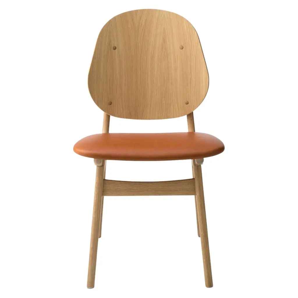 Noble chair teak oiled oak terracotta by Warm NordicDimensions: D 55 x W 47 x H 85 cmMaterial: Teak oiled solid oak, Veneer seat and back, Textile upholstery.Weight: 7.5 kgAlso available in different colours and finishes.An elegant and 'noble' designer chair created in the 1950s by the acclaimed furniture designer, Arne Hovmand-Olsen. The Noble dining chair is a classic beauty that transports the craftsmanship and aesthetics of Danish modernism into the contemporary dining room or sociable kitchen. Noble's high back and its distinctive details highlight the beautiful qualities of the wood. The seat of the chair is available in upholstery or leather, each of which in its own way harmonises with the noble wood, underscoring the timeless appearance of the Danish-manufactured dining chair. Choose from several different exclusive furnishing fabrics from the likes of Kvadrat in carefully selected shades from the Warm Nordic universe, or the highest quality black or natural leather. The frame is available in several exclusive types of wood with various classic surface treatments and colour expressions.Warm Nordic is an ambitious design brand anchored in Nordic design history and with a timeless, aesthetic style that inspires you to appreciate the little things in life. The company is the result of several years’ intense work on developing a new design brand with design history, quality and personality at its core. Warm Nordic boasts a colourful and charming universe of furniture, lamps and accessories full of personality. Our designs encapsulate the Nordic spirit, which in its essence is timeless, inclusive and warm.