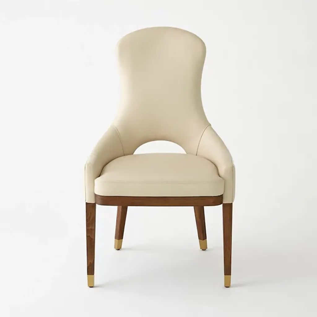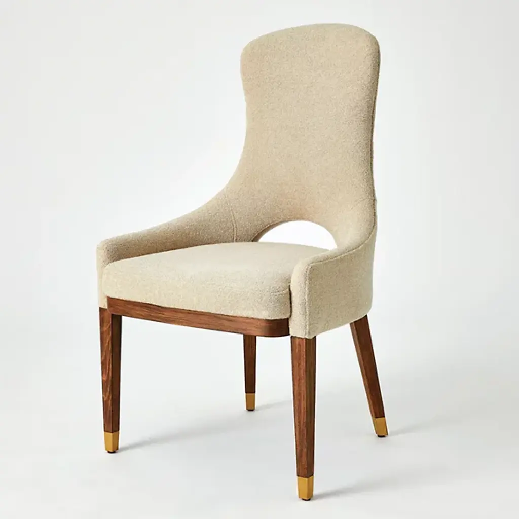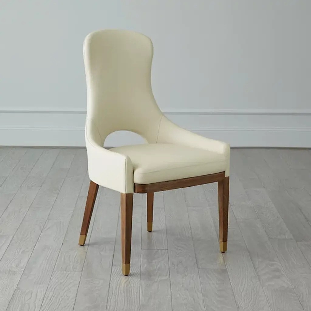 The Nola Dining Chair is presented by Global Views. This is a stunning blend of contemporary design and exceptional craftsmanship, with a distinctive silhouette that features an elegant curve that gracefully wraps around the back. Crafted with a solid beech wood frame, this chair ensures durability and stability, providing long-lasting comfort. The brushed brass feet lend a touch of opulence and enhance the chair’s overall aesthetic appeal. With a slightly domed seat, the Nola Dining Chair offers ergonomic support, inviting you to sit back and relax.