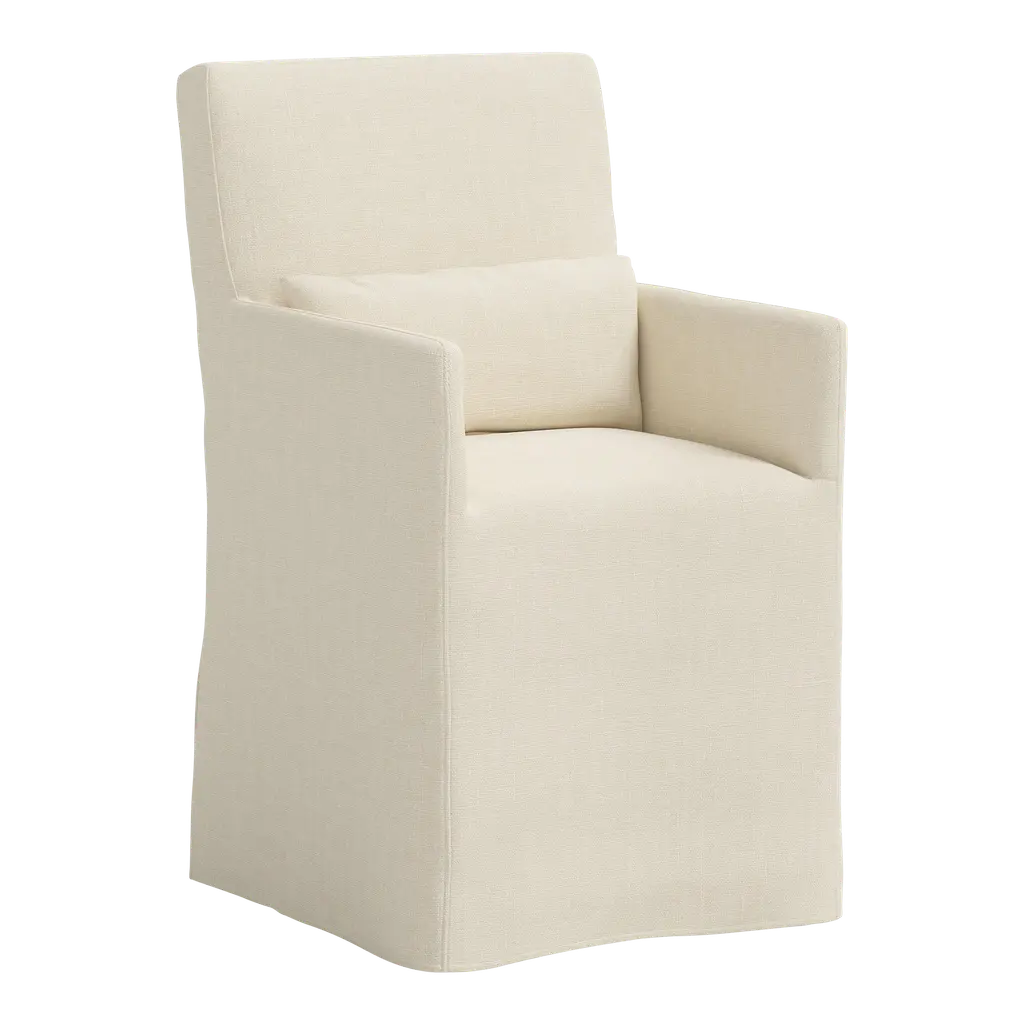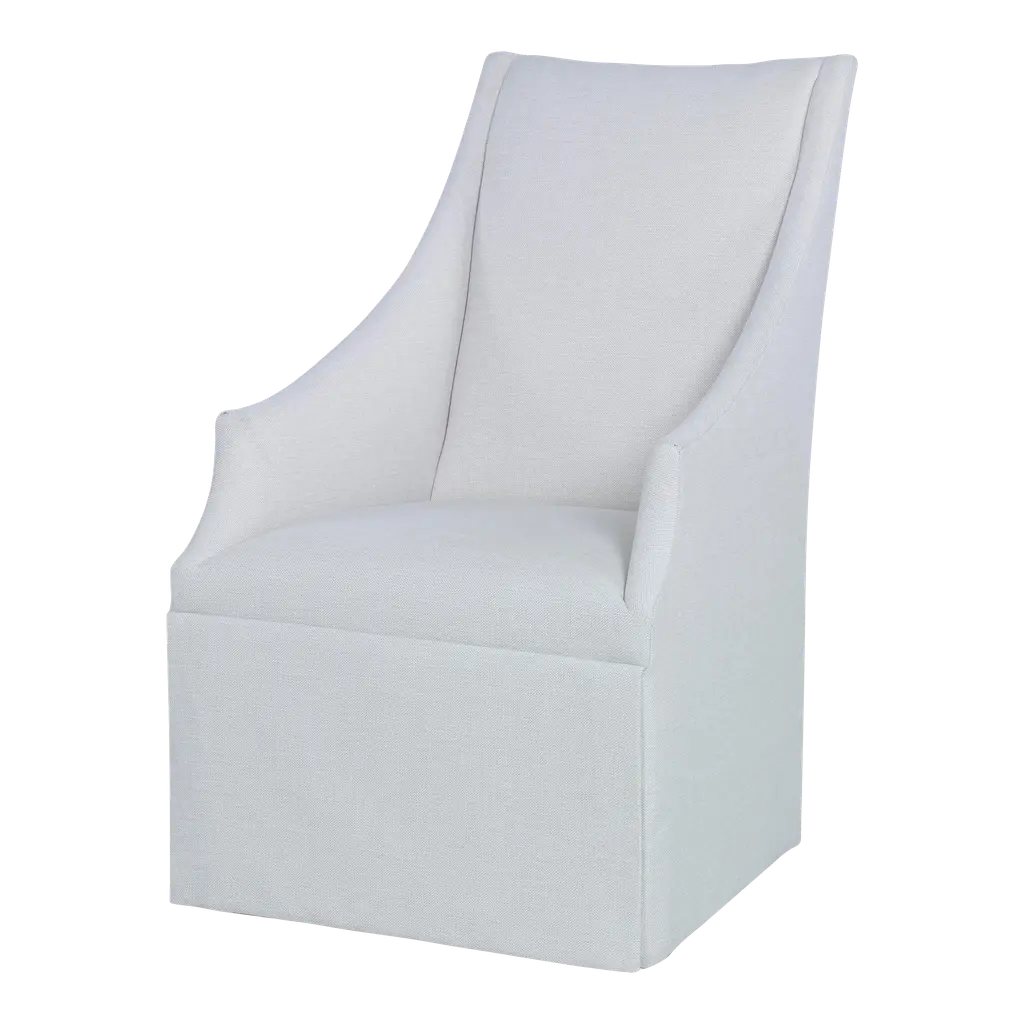 Our Nolan dining chair blends contemporary and classic style with plush comfort to create one perfect piece. Boasting casters for easy movement, this chair offers a stylish seat for your dinner guests.