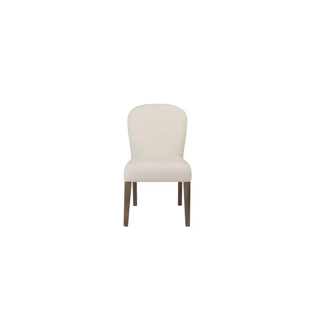 Enhance your dining space with the Nora Ivory Boucle Swoop Arm Dining Side Chair. This modern chair features an ivory seat and brown legs, making it a versatile addition to any decor. The boucle fabric offers a soft and comfortable seating experience, while the solid rubberwood legs ensure durability and stability.