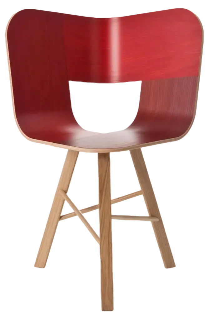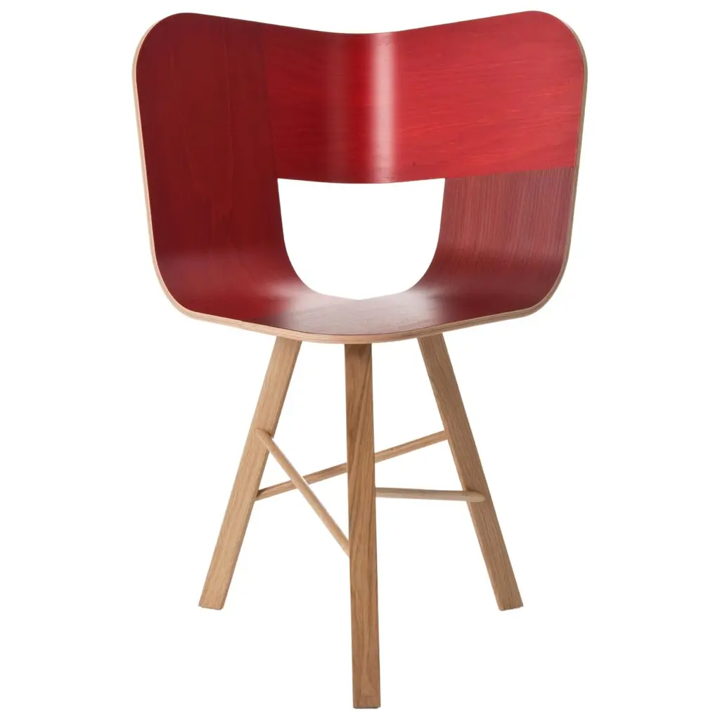 Stylish and versatile, this armchair is a new non-upholstered version from the Not Collection that offers a functional solution for modern interior decors. Outfitted with a curved beech plywood seat with a walnut finish, it is supported by slim steel legs slightly flared for stability sporting a bright red varnish. A must-have for offices and homes for its versatile design, it is available in a range of finishes, please contact the Concierge for details.