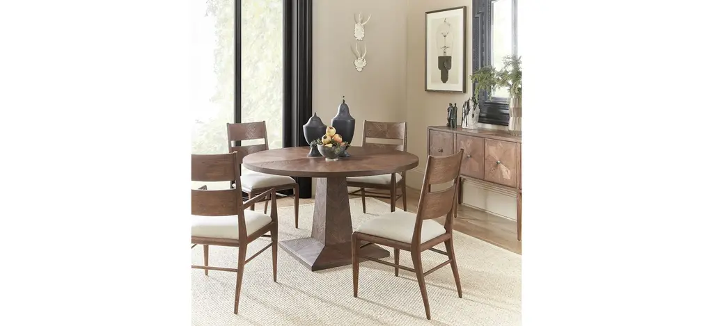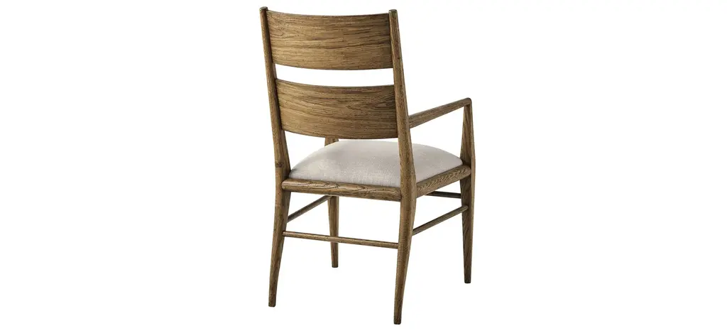Seen here in our Dawn finish with tapered oak leg, the Nova Dining Arm Chair is a classic with hand-carved oak and a parquetry design. Striving for functionality, this upholstered seat is constructed with a top and mid rail bar joined by stretchers.