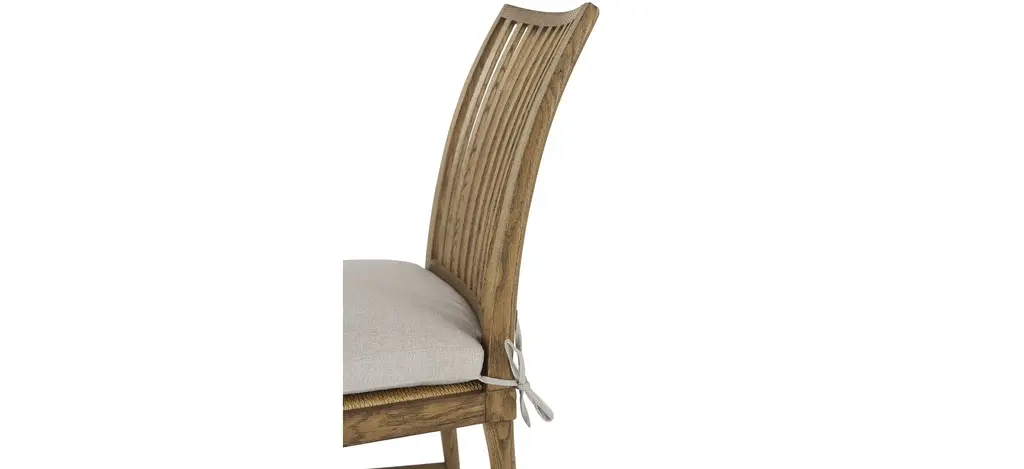 Take a seat in our Dusk finish rustic oak veneered Nova Dining Side Chair III with a slatted backrest. Shining among our dining chairs, this caned and loosely cushioned seat is joined by stretchers and supported by tapered oak legs.