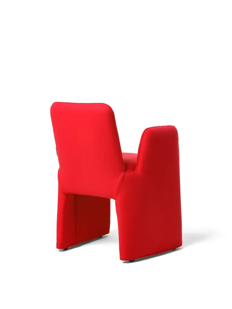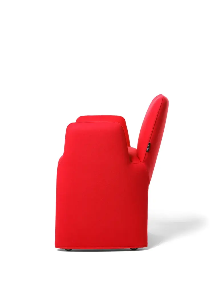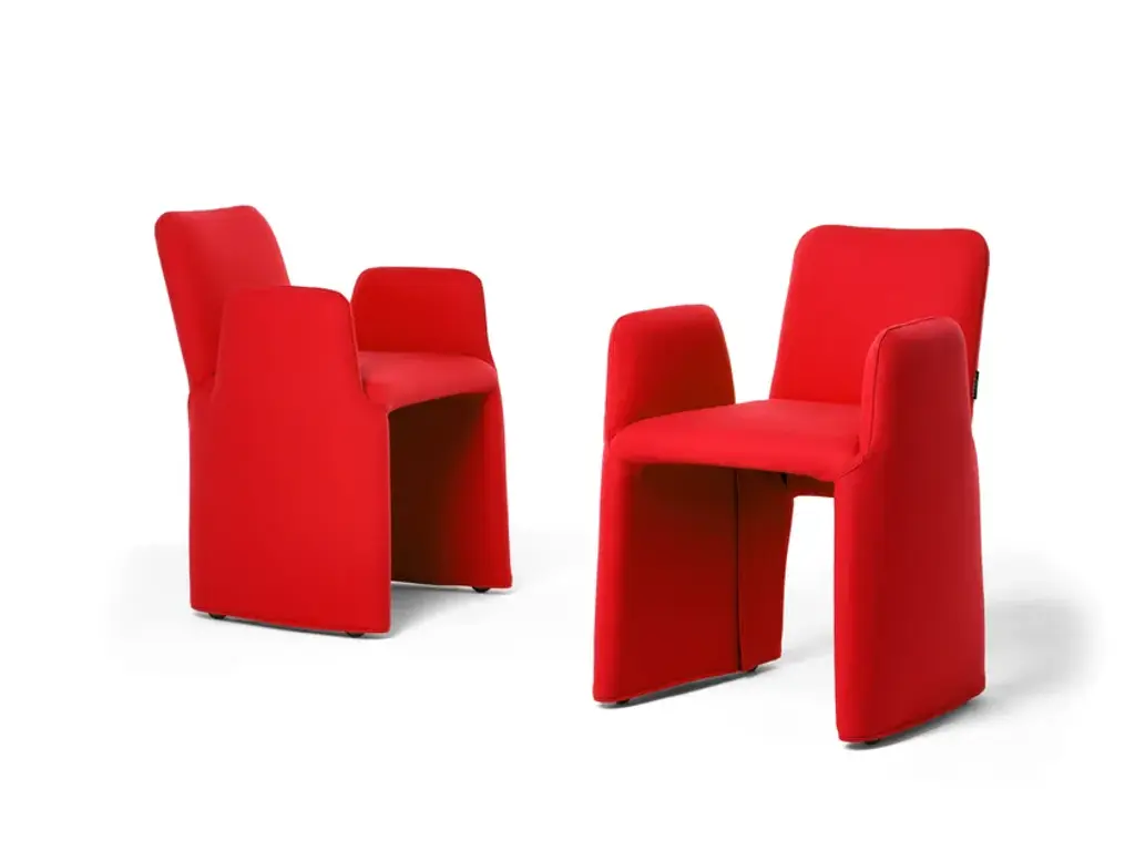 OW features a fully removable cover and 4 mono-directional wheels - to easily slide under a table and away from it - making it the perfect dining and conference room armchair. Materials:Metal tube structure, elastic support belts, internal cushions in polyurethane, dacron lining, with covers in cotton velvet, Kvadrat Steelcut 2 or Divina, wool leather or C.O.M.