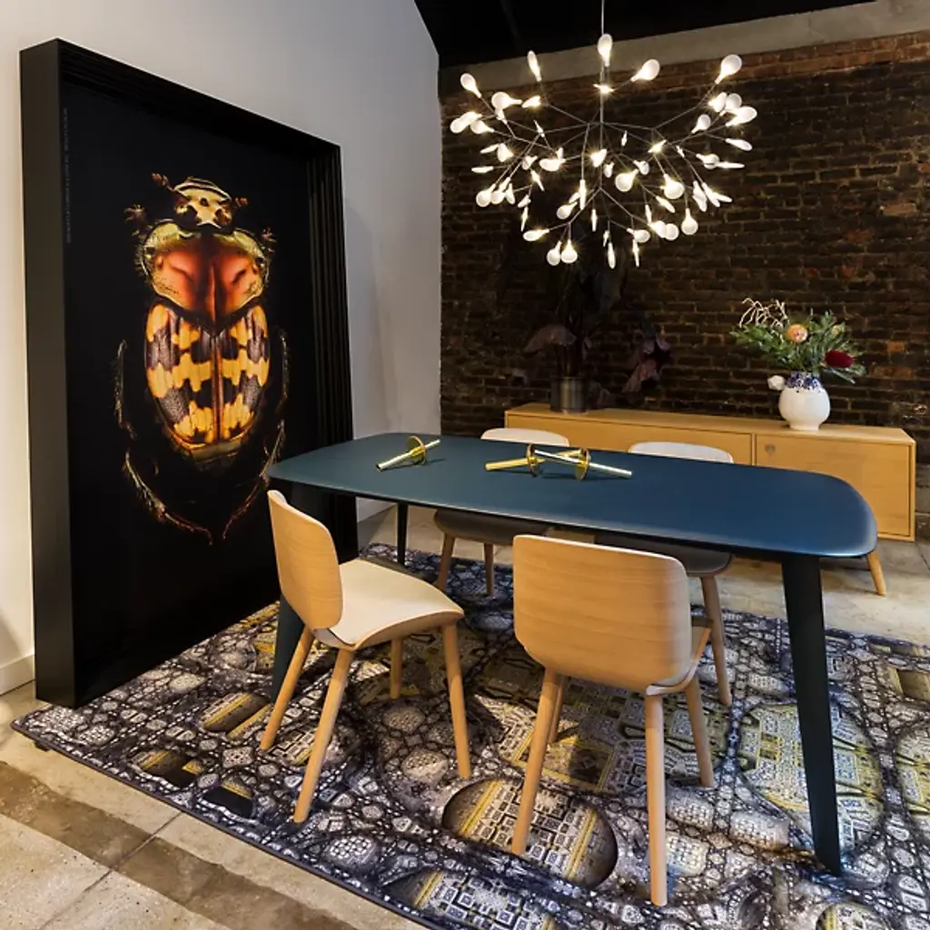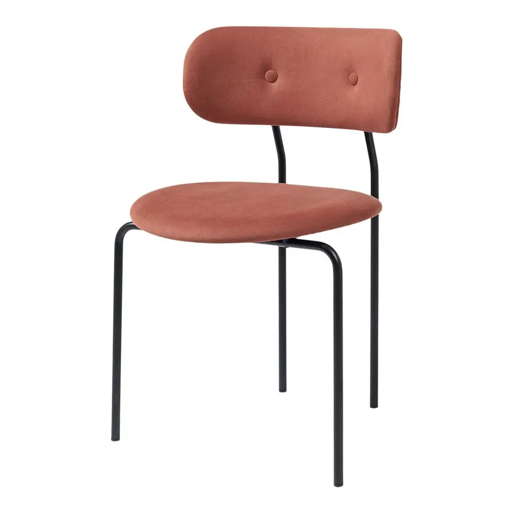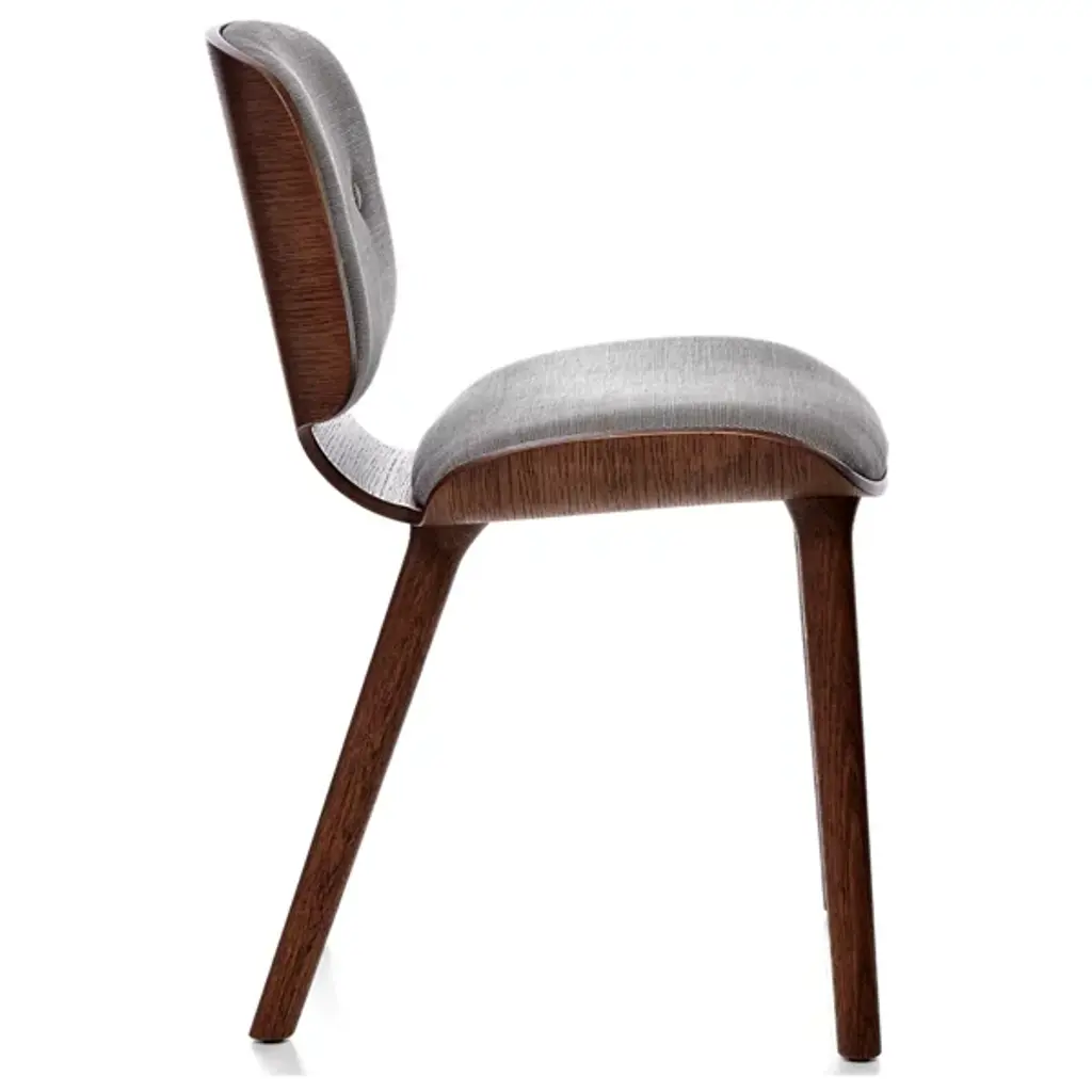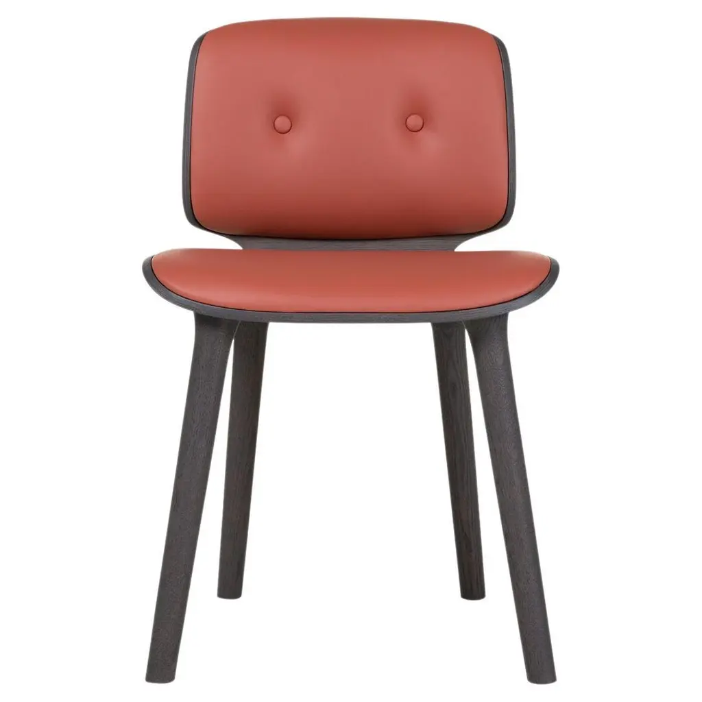 A kernel of comfort. The Nut Dining Chair from Moooi sits at the core of one's dining experiences as a balanced, embracing design. Creator Marcel Wanders Studio seeks to bring the human touch back to design in a new age approach reuniting designer, craftsperson, and user. The craftsperson's impact is felt with a group of sculpted legs that creates a relaxed tone. A bent plywood seat shell on top beautifully outlines the upholstery with a contrasting color. Charming in its button tufts, the upholstered cushioning hugs the body with a minimal profile.