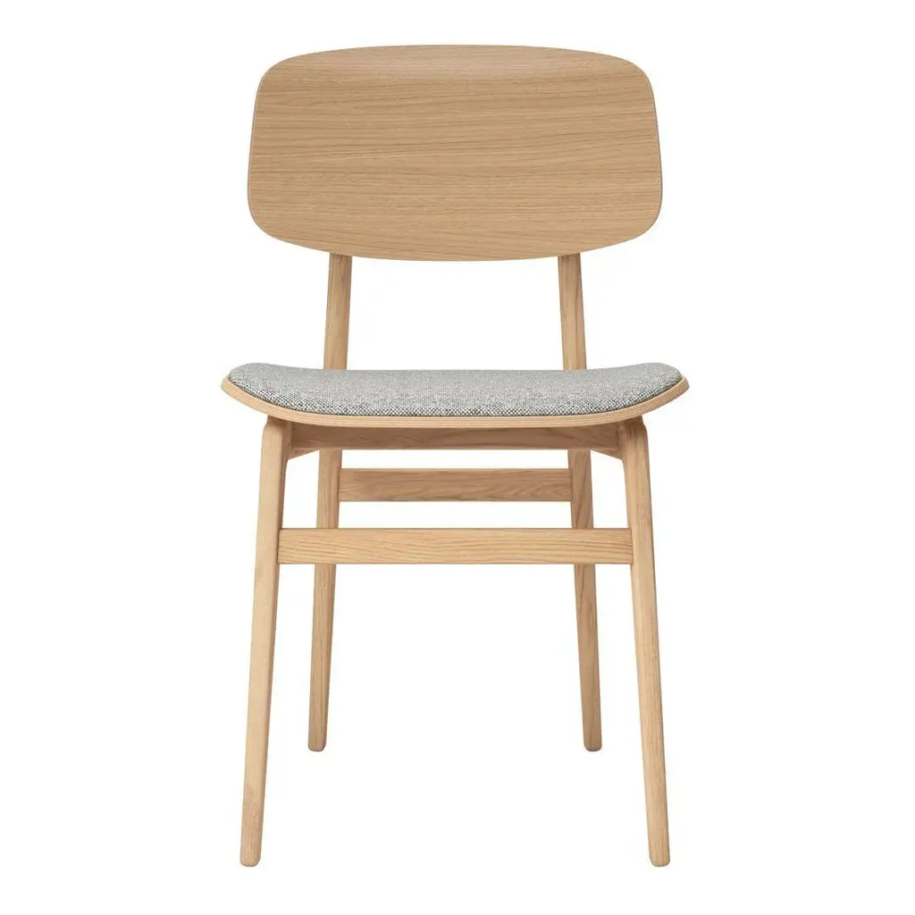 Inspired by traditional Danish elementary school chairs, the NY11 Dining Chair has a frame hand-crafted from solid oak and a seat of laminated oak veneer. The Chair came to life when designers Rune Krøjgaard and Knut Bendik Humlevik went on a mission to create a modern take on the Scandinavian dining chair. Just like a school chair it had to be both comfortable and very durable. The result is a simple and honest chair with a timeless expression. The visible grains in the chair's structure emphasise the quality of the materials and give it a natural appearance.