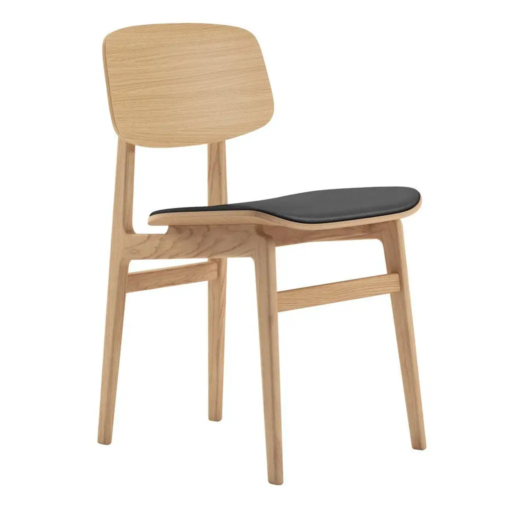 Inspired by traditional Danish elementary school chairs, the NY11 Dining Chair has a frame hand-crafted from solid oak and a seat of laminated oak veneer. The Chair came to life when designers Rune Krøjgaard and Knut Bendik Humlevik went on a mission to create a modern take on the Scandinavian dining chair. Just like a school chair it had to be both comfortable and very durable. The result is a simple and honest chair with a timeless expression. The visible grains in the chair's structure emphasise the quality of the materials and give it a natural appearance.