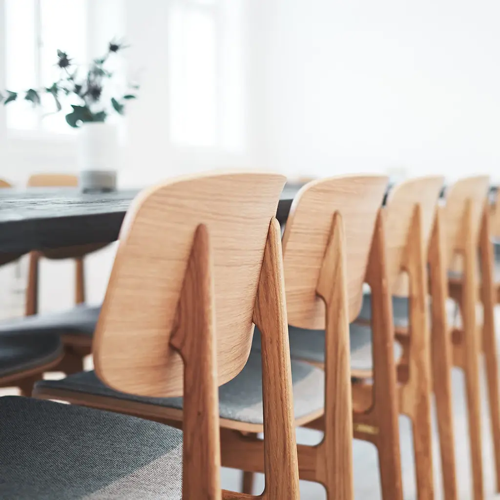 Inspired by traditional Danish elementary school chairs, the NY11 Dining Chair has a frame hand-crafted from solid oak and a seat of laminated oak veneer. The Chair came to life when designers Rune Krøjgaard and Knut Bendik Humlevik went on a mission to create a modern take on the Scandinavian dining chair. Just like a school chair it had to be both comfortable and very durable. The result is a simple and honest chair with a timeless expression. The visible grains in the chair's structure emphasise the quality of the materials and give it a natural appearance.
