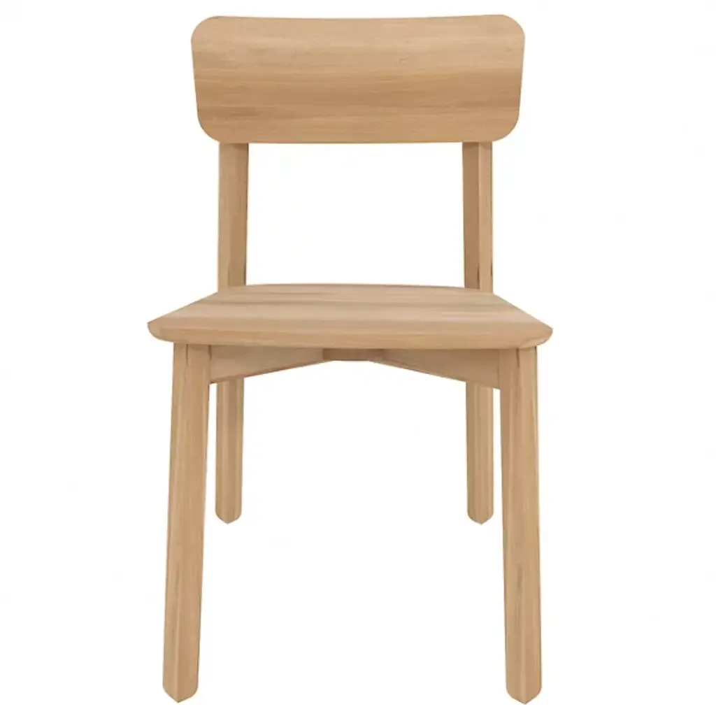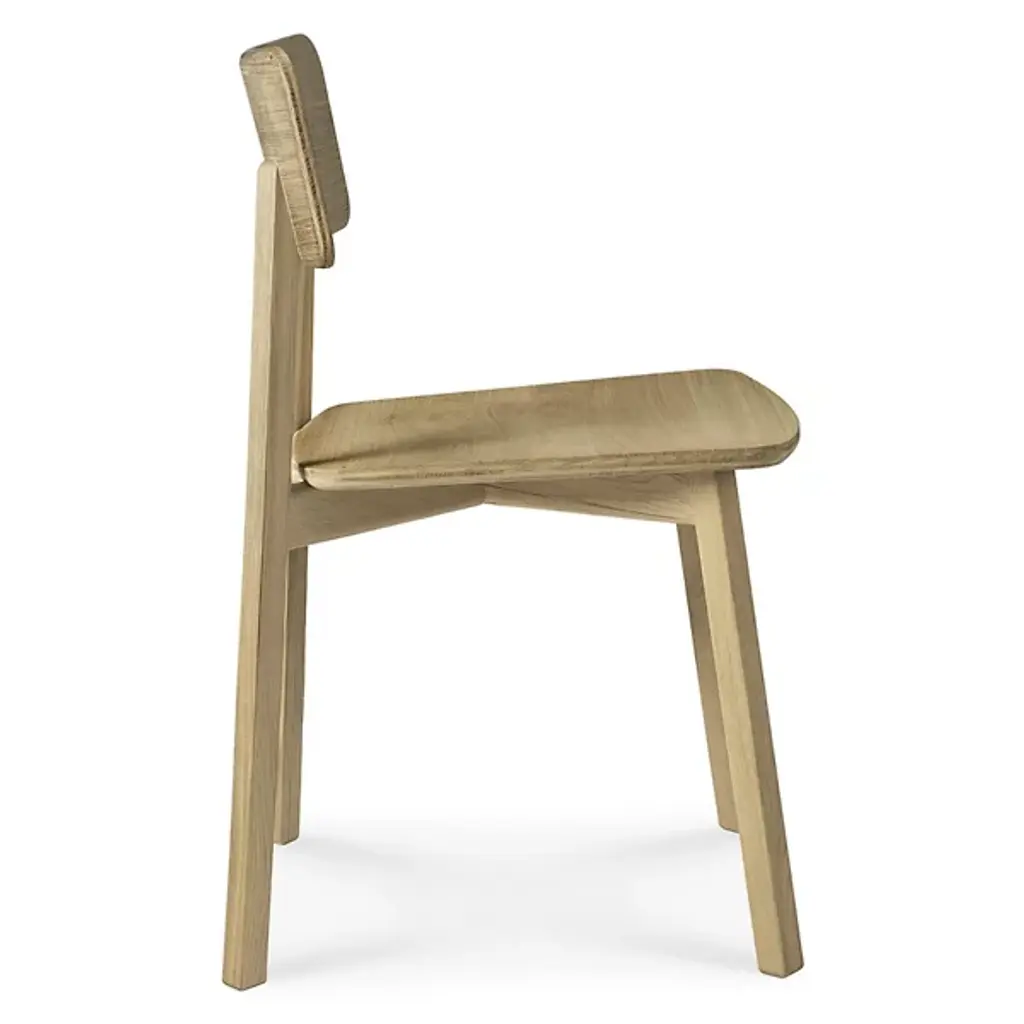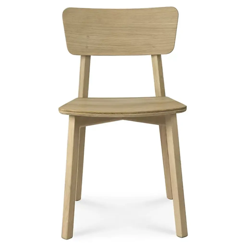 The well-thought angles and artful construction choices of the Oak Casale Dining Chair by Ethnicraft give this chair something intangibly playful. Its natural oak finish shows off angular legs that rest on a center mount, clear intention behind Studio KaschKasch’s interesting design. The thoughtfully placed backrest provides large comfort from small choices. The Oak Casale Dining Chair is an impressively sophisticated showing of a minimalist form.