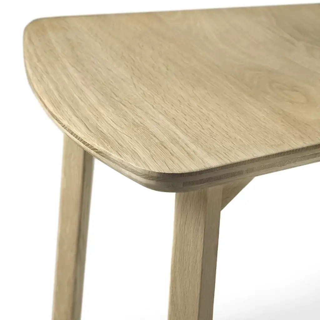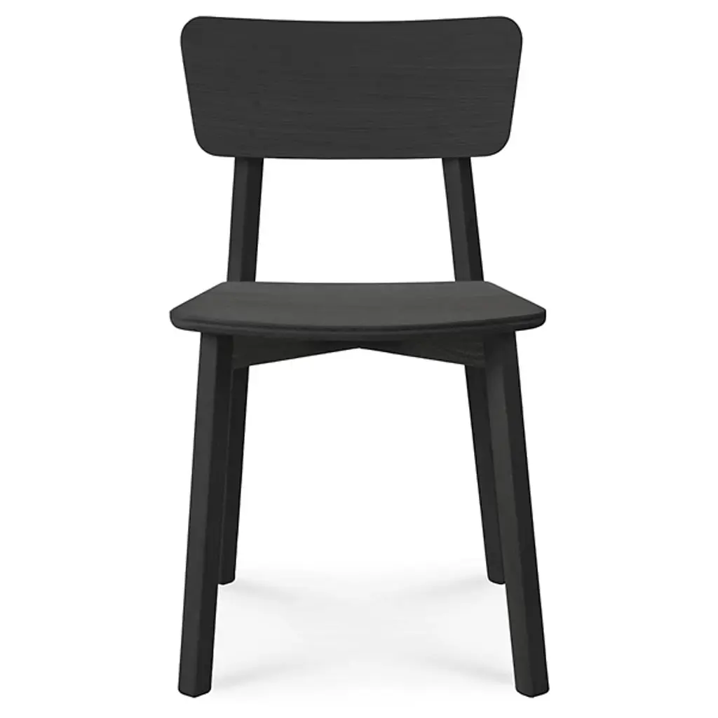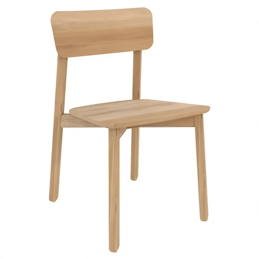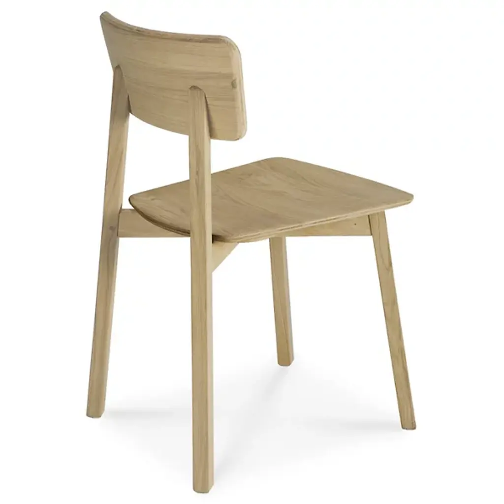The well-thought angles and artful construction choices of the Oak Casale Dining Chair by Ethnicraft give this chair something intangibly playful. Its natural oak finish shows off angular legs that rest on a center mount, clear intention behind Studio KaschKasch’s interesting design. The thoughtfully placed backrest provides large comfort from small choices. The Oak Casale Dining Chair is an impressively sophisticated showing of a minimalist form.