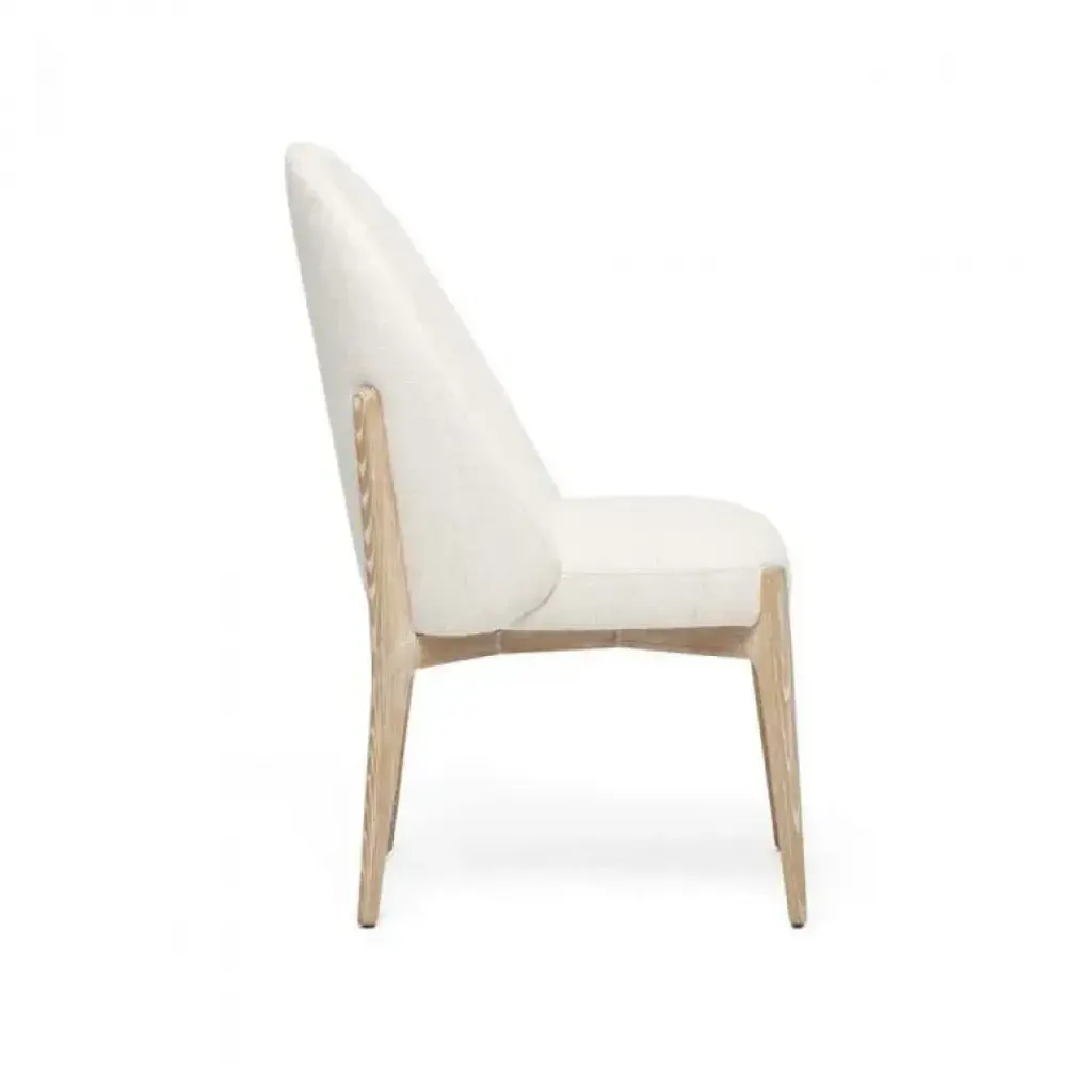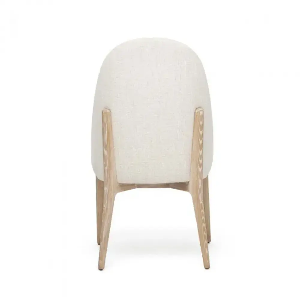 Featuring a whitewash ash frame and desert dune Belgian loom upholstery, the Oakley Dining Chair is both deceptively discreet and obviously chic. This item is made of solid wood. Item will not be exactly as pictured, subtle deviations in hue after finishing can be expected as a result of natural variations in coloration of the base material.