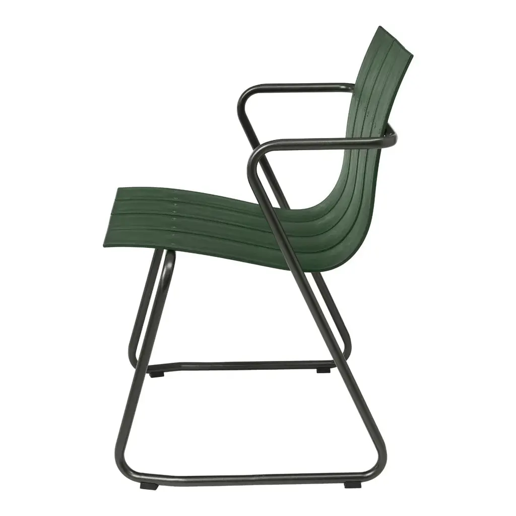 The Ocean Collection is a reimagined table-and-chair collection (originally designed in 1955) in ocean waste plastic, combining innovative solutions to prevent pollution of the world's oceans - with one of the 20th century's most renowned designers, Nanna Ditzel. The series is characterized by its light structure with repeated slats and metal frames, made and tested for outdoor use. The ocean waste plastic and recycled plastic (PP) honours the UN Sustainable Development Goals of protecting “Life Below Water" (SDGs 14) and “Responsible Consumption and Production" (SDGs 12) and "Partnership for the Goals" (SDGs 17). The Ocean Collection is designed for disassembly, meaning that the design allows each component in its purest form to recycle into new production circles. One Ocean Chair uses 960g of ocean plastic waste.