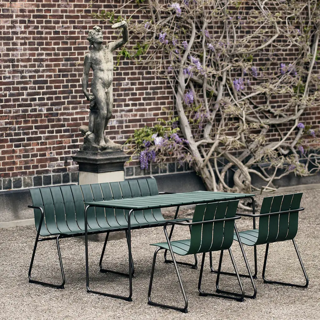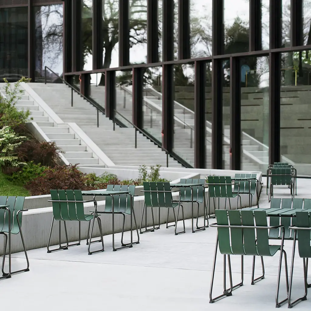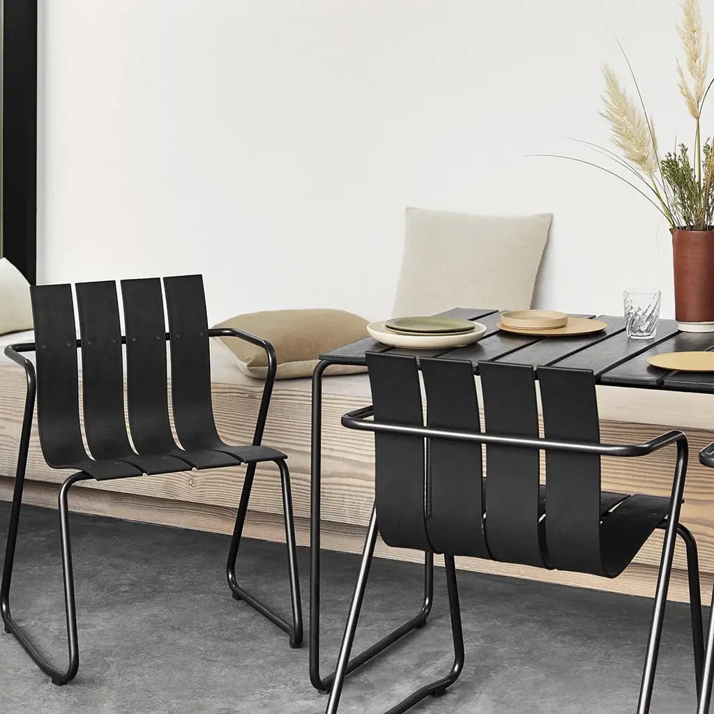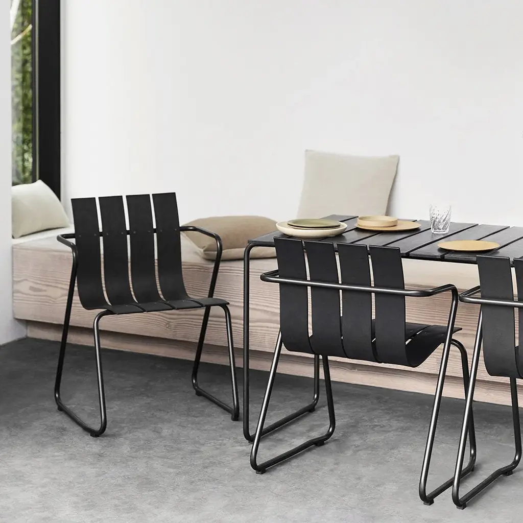 The Ocean Collection is a reimagined table-and-chair collection (originally designed in 1955) in ocean waste plastic, combining innovative solutions to prevent pollution of the world's oceans - with one of the 20th century's most renowned designers, Nanna Ditzel. The series is characterized by its light structure with repeated slats and metal frames, made and tested for outdoor use. The ocean waste plastic and recycled plastic (PP) honours the UN Sustainable Development Goals of protecting “Life Below Water" (SDGs 14) and “Responsible Consumption and Production" (SDGs 12) and "Partnership for the Goals" (SDGs 17). The Ocean Collection is designed for disassembly, meaning that the design allows each component in its purest form to recycle into new production circles. One Ocean Chair uses 960g of ocean plastic waste.