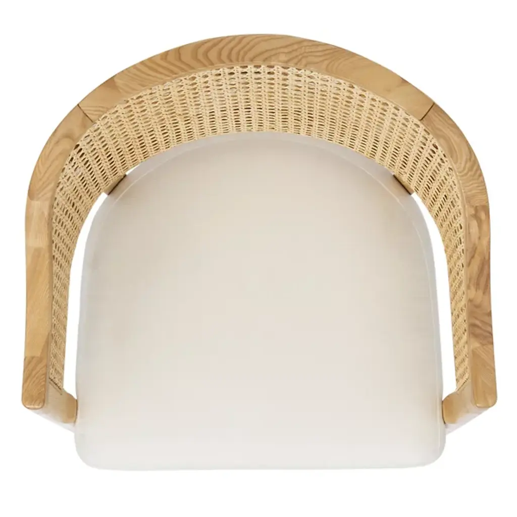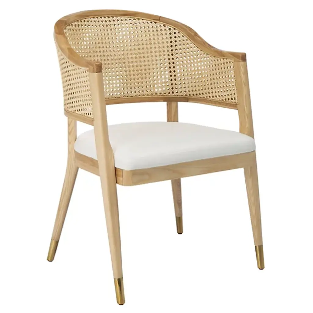 The Oditi Dining Chair is presented by Alder & Ore. The curved rattan back adds a touch of organic beauty, while the natural stiletto-inspired wood frame not only provides sturdy support but also enhances the chair’s aesthetic appeal. The addition of brass caps adds a subtle touch of luxury and sophistication. With its harmonious blend of materials and design, the Oditi Rattan Dining Chair is a statement piece that adds character and refinement to your dining space.